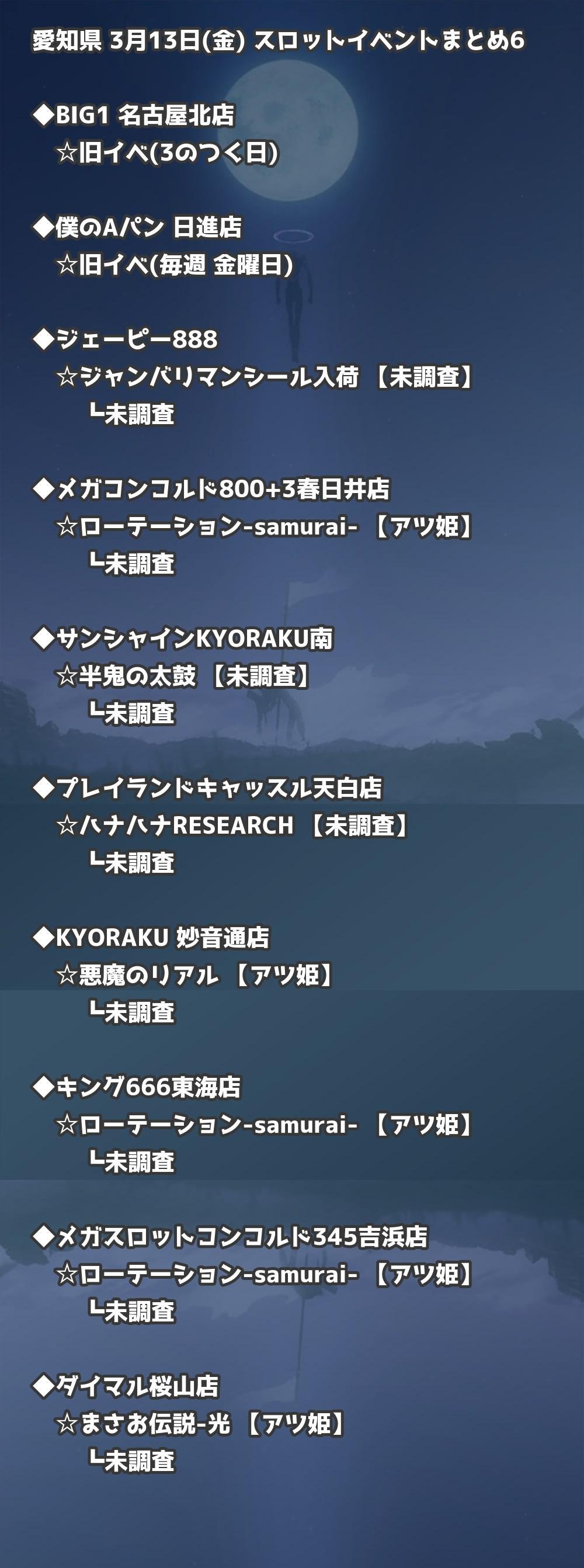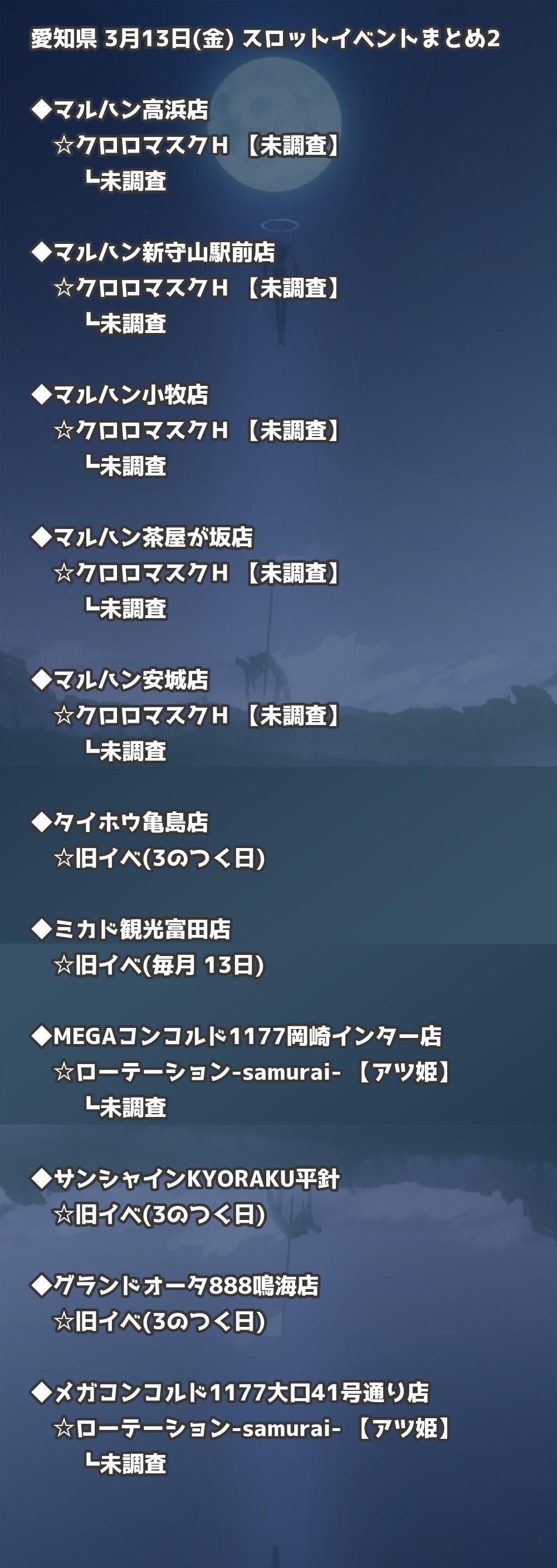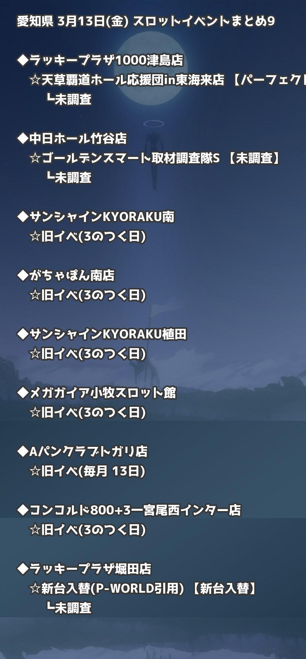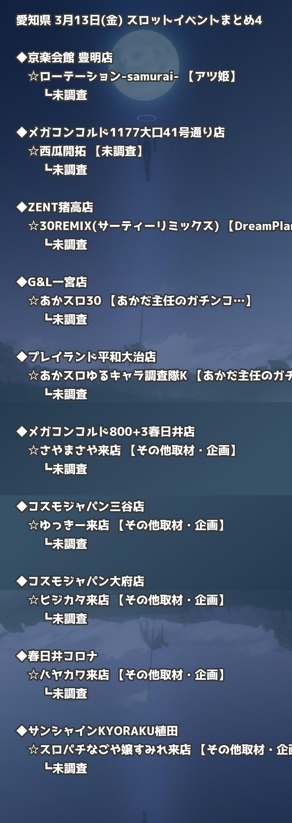 【愛知県】3月13日(金) パチンコホールイベント取材まとめ記事です。