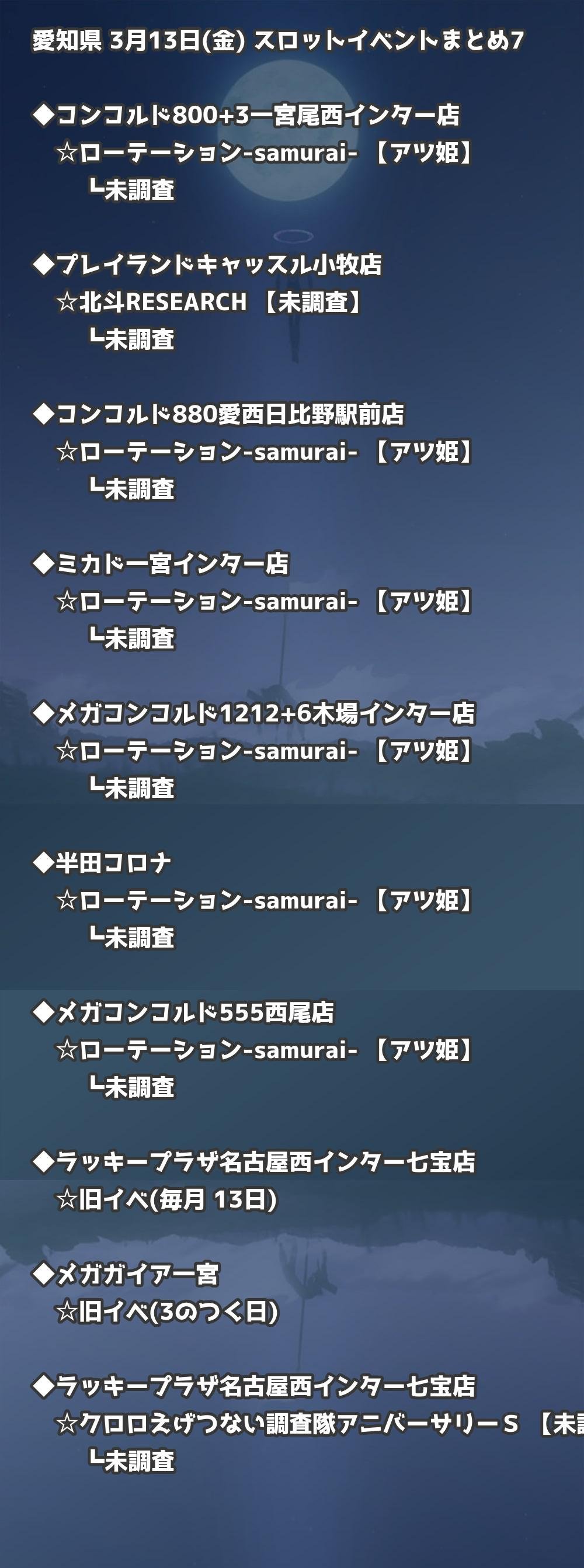 📊 愛知県 3月13日(金) 勝てるパチンコ・スロット取材店舗一覧|おすすめ順