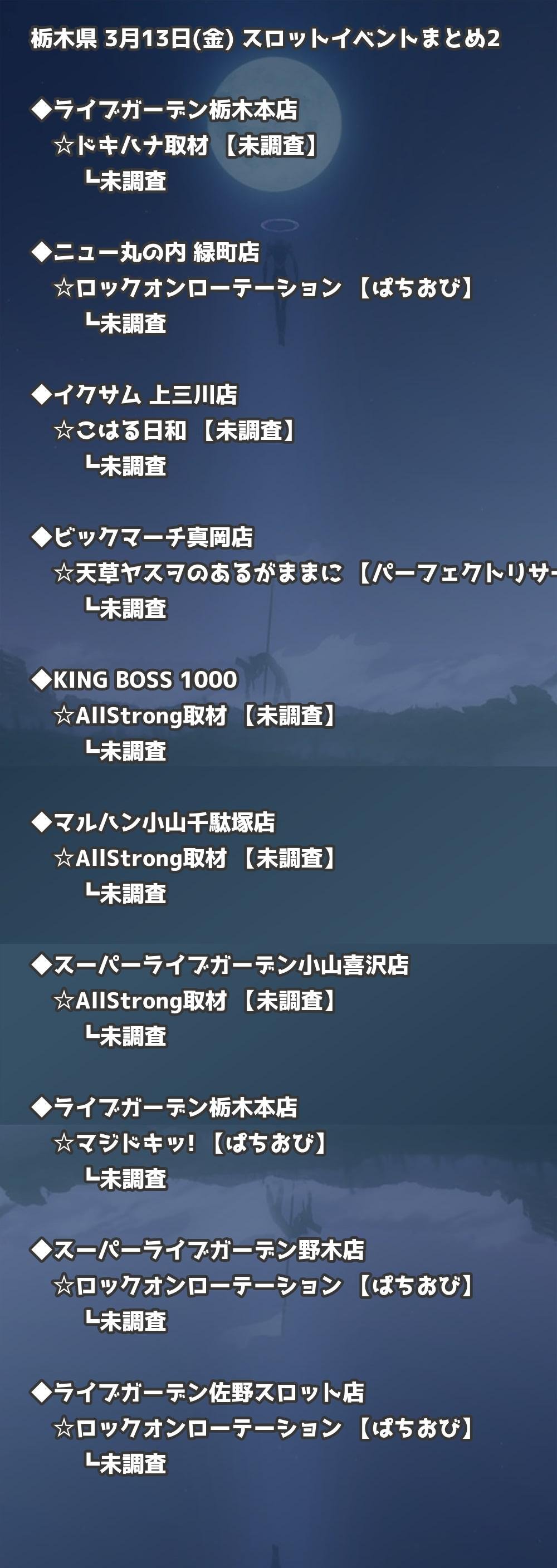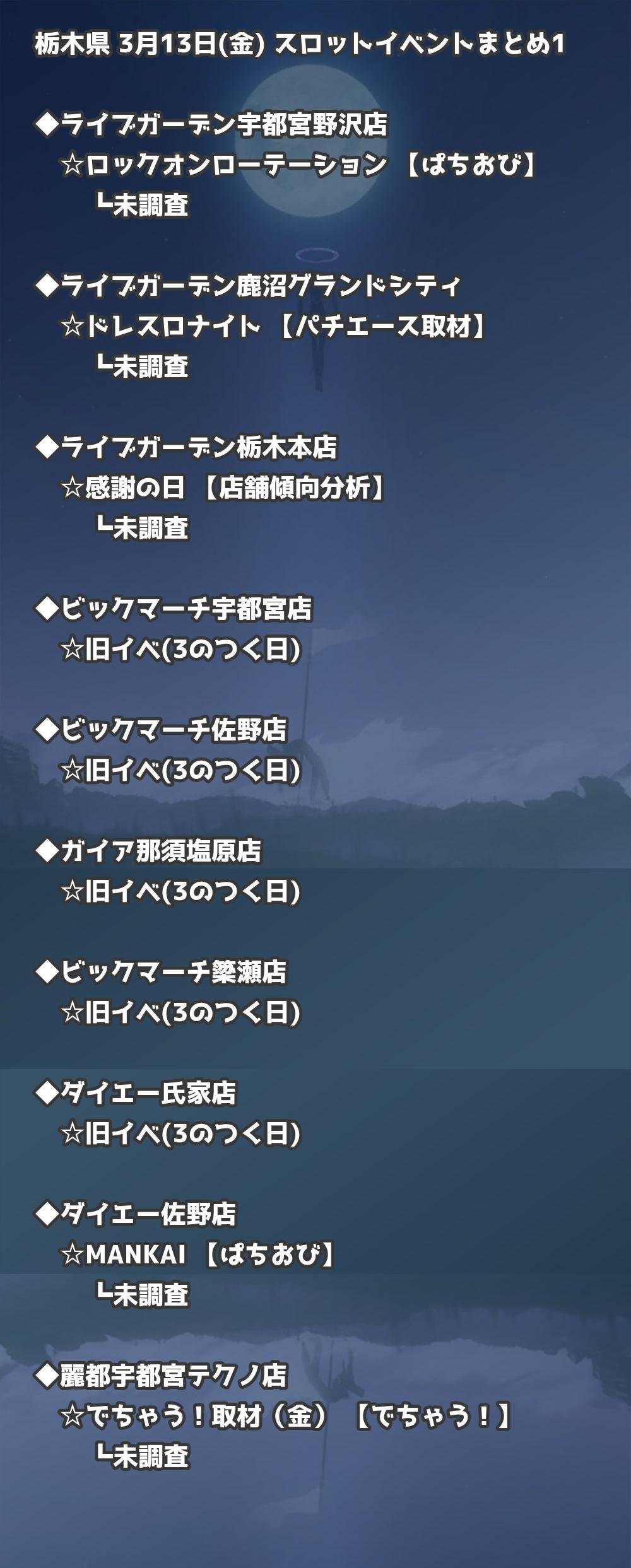 【栃木県】3月13日(金) パチンコホールイベント取材まとめ記事です。