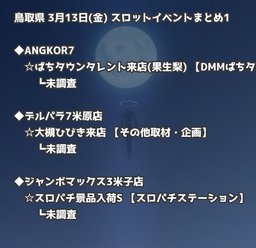 【鳥取県】3月13日(金) パチンコホールイベント取材まとめ記事です。