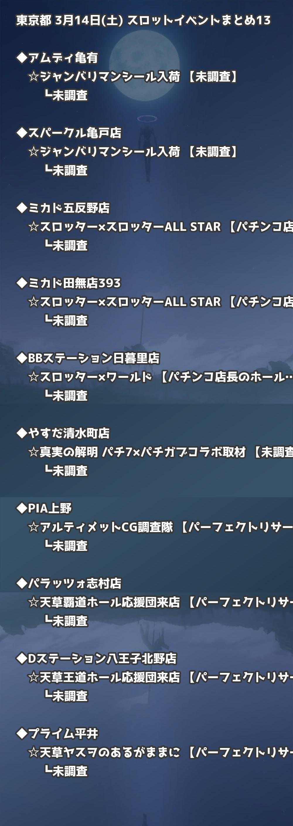 📊 東京都 3月14日(土) 勝てるパチンコ・スロット取材店舗一覧|おすすめ順
