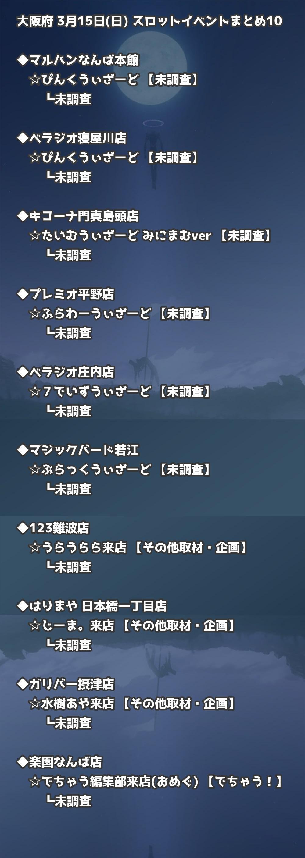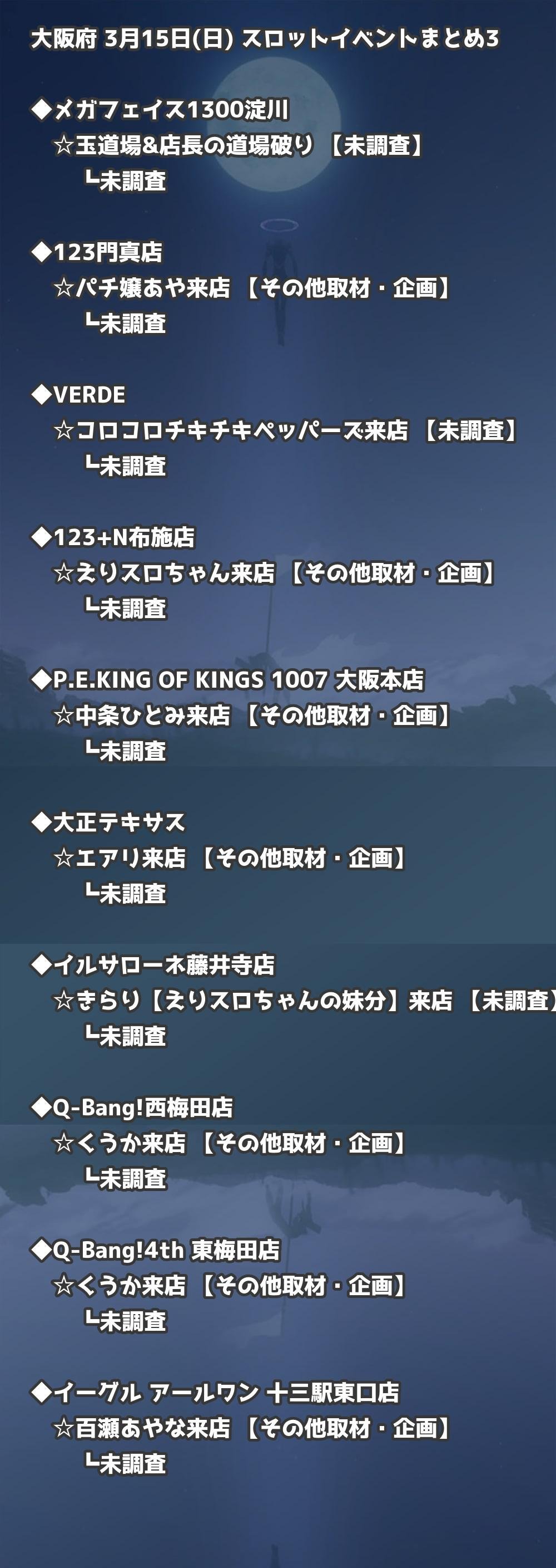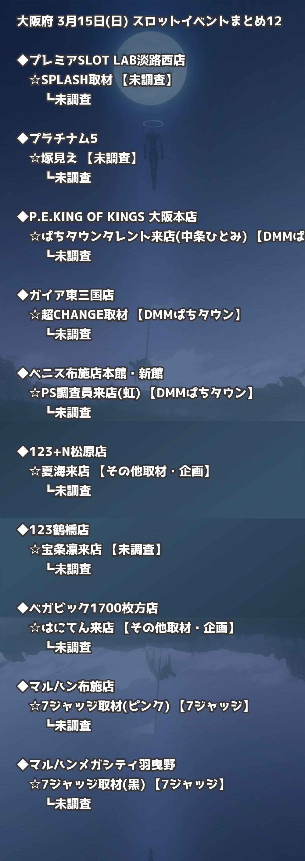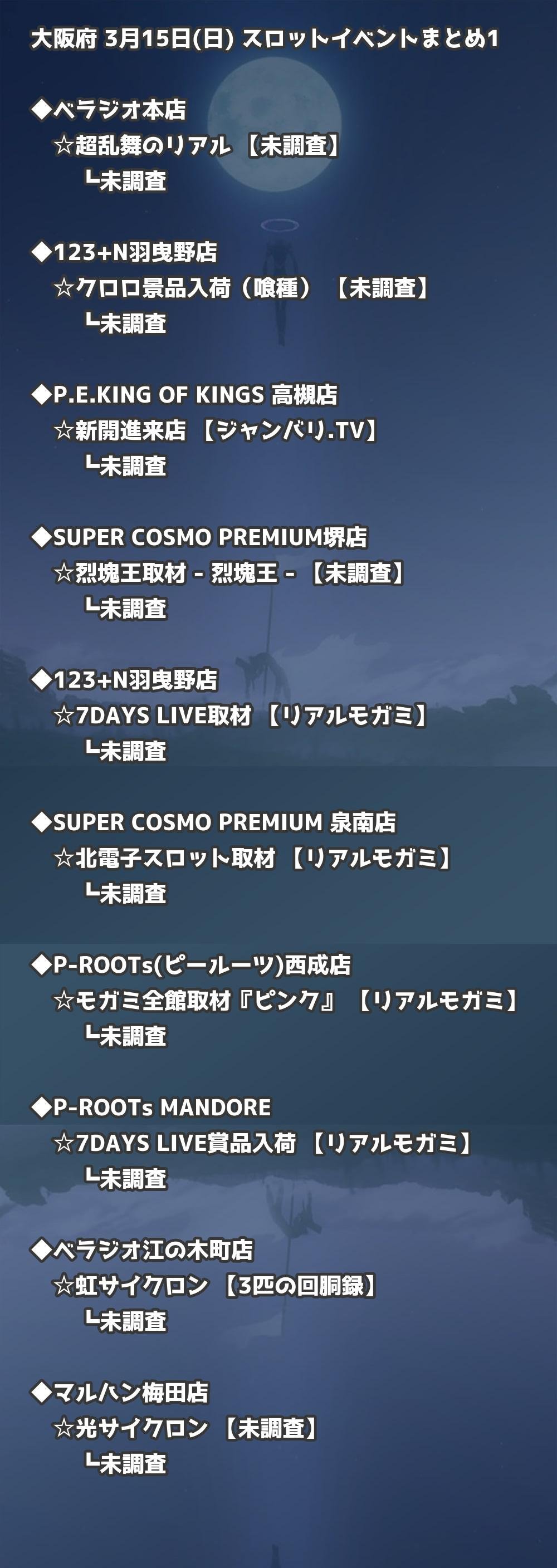 【大阪府】3月15日(日) パチンコホールイベント取材まとめ記事です。
