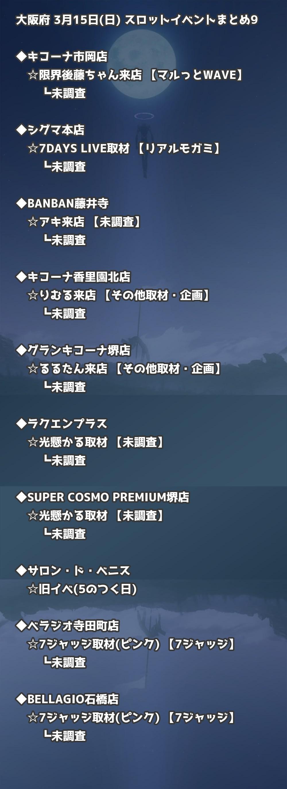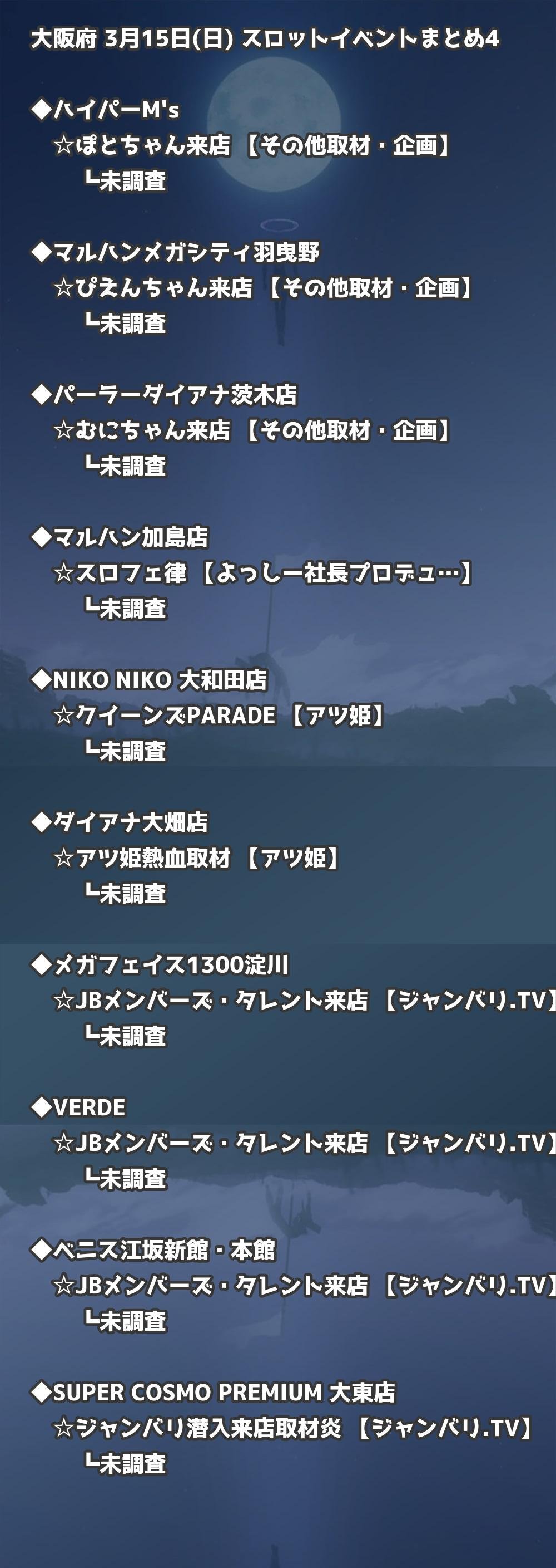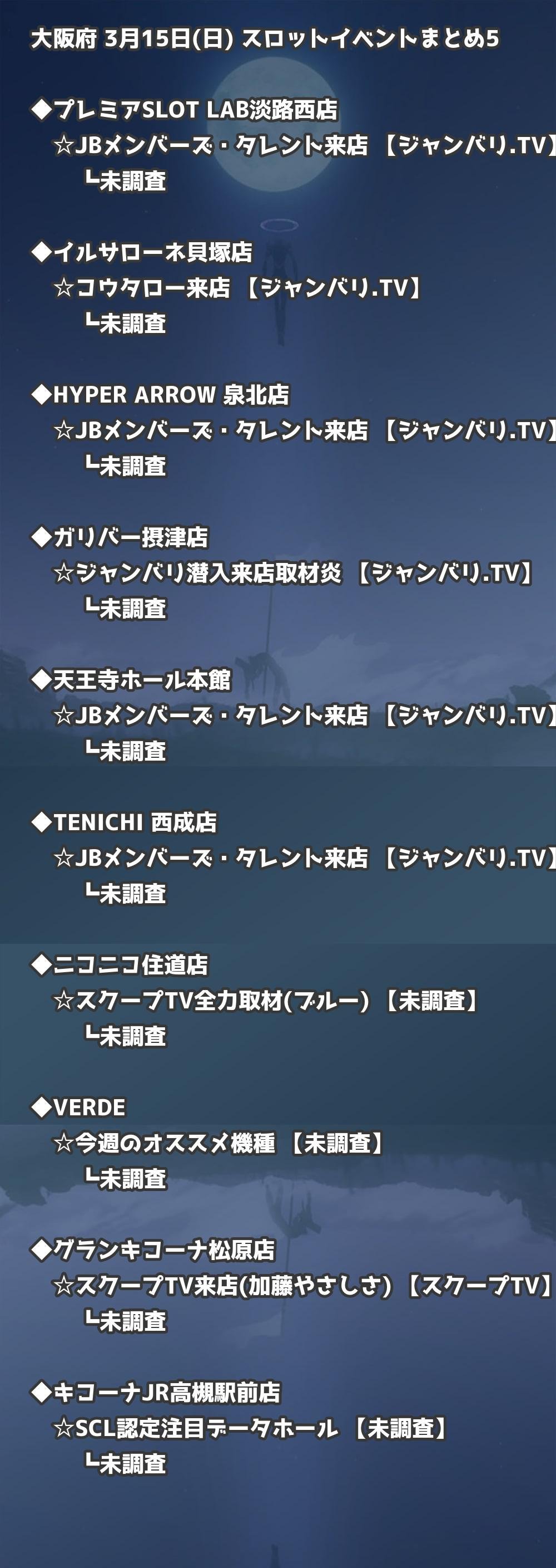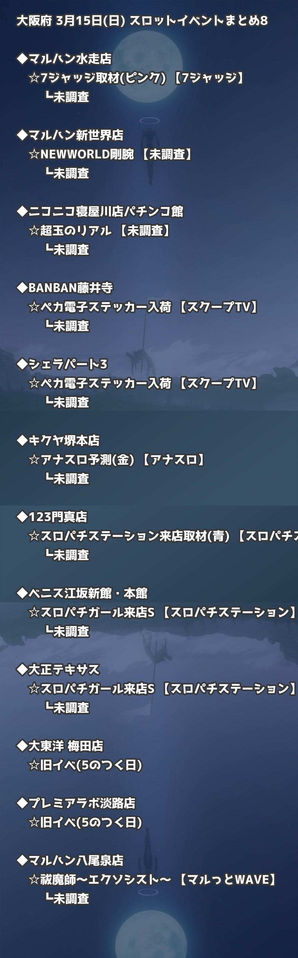 【大阪府】3月15日(日) パチンコホールイベント取材まとめ記事です。