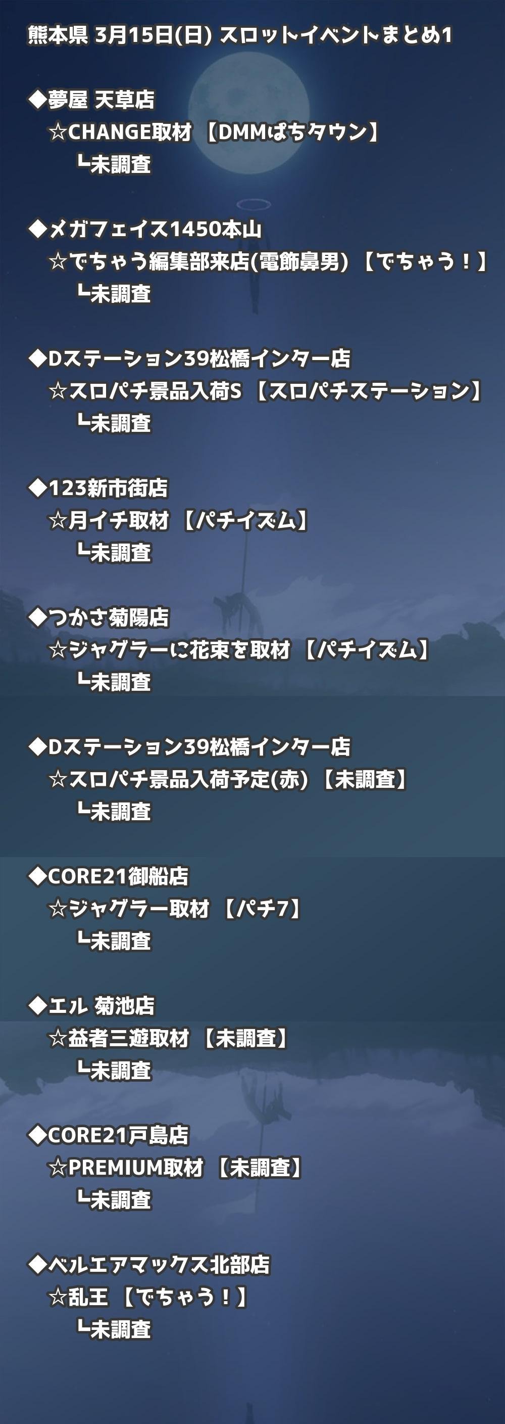 【熊本県】3月15日(日) パチンコホールイベント取材まとめ記事です。