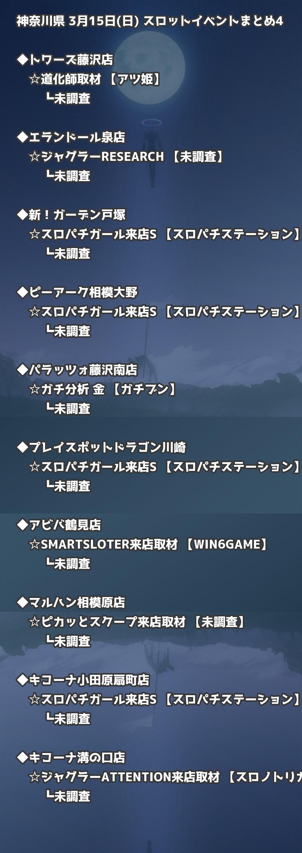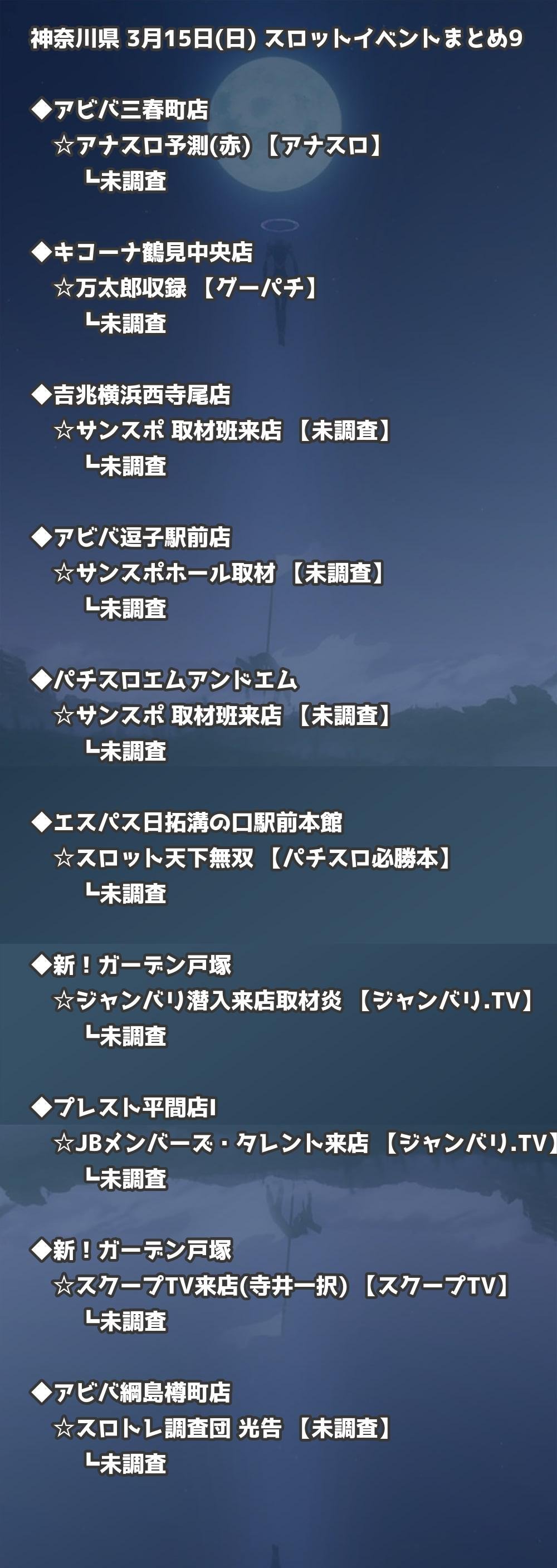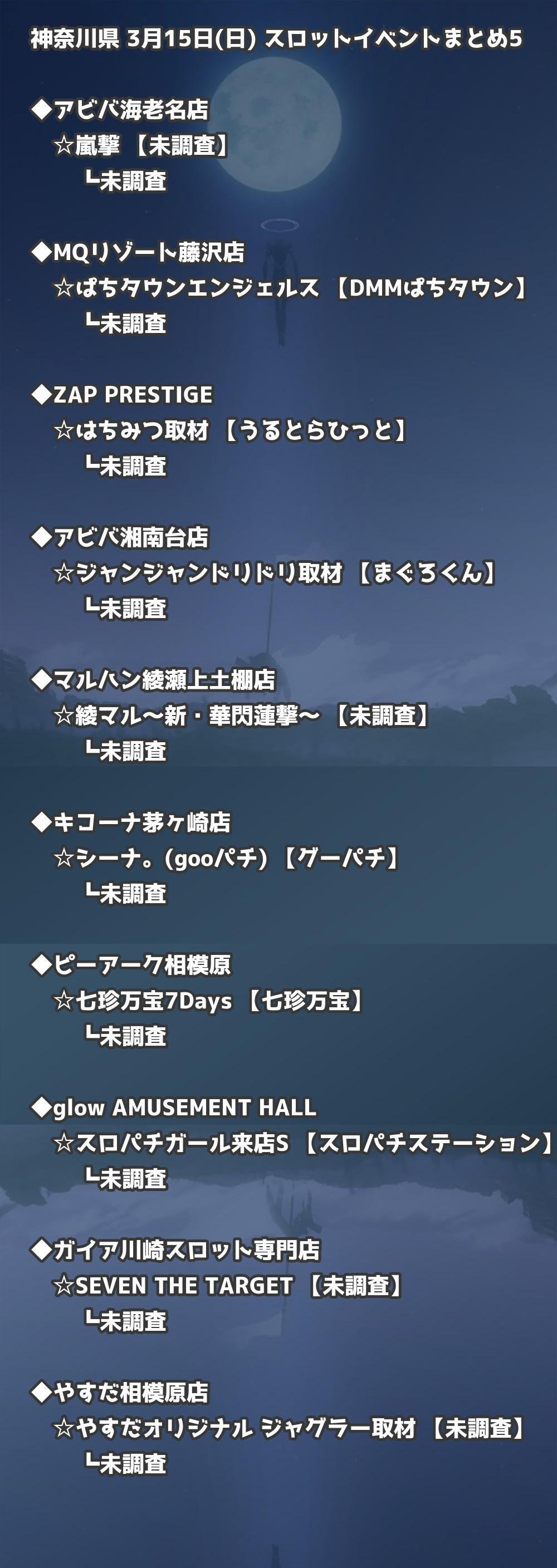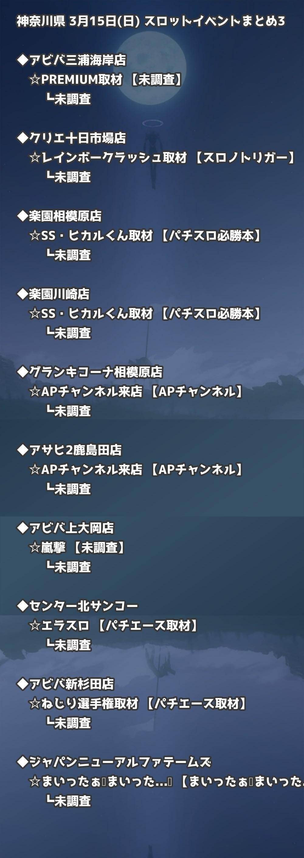 📊 神奈川県 3月15日(日) 勝てるパチンコ・スロット取材店舗一覧|おすすめ順