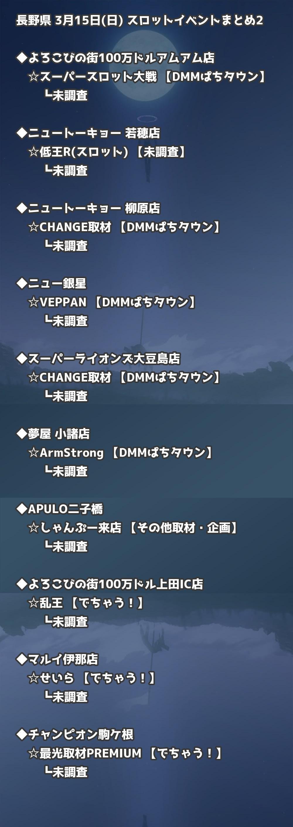 📊 長野県 3月15日(日) 勝てるパチンコ・スロット取材店舗一覧|おすすめ順
