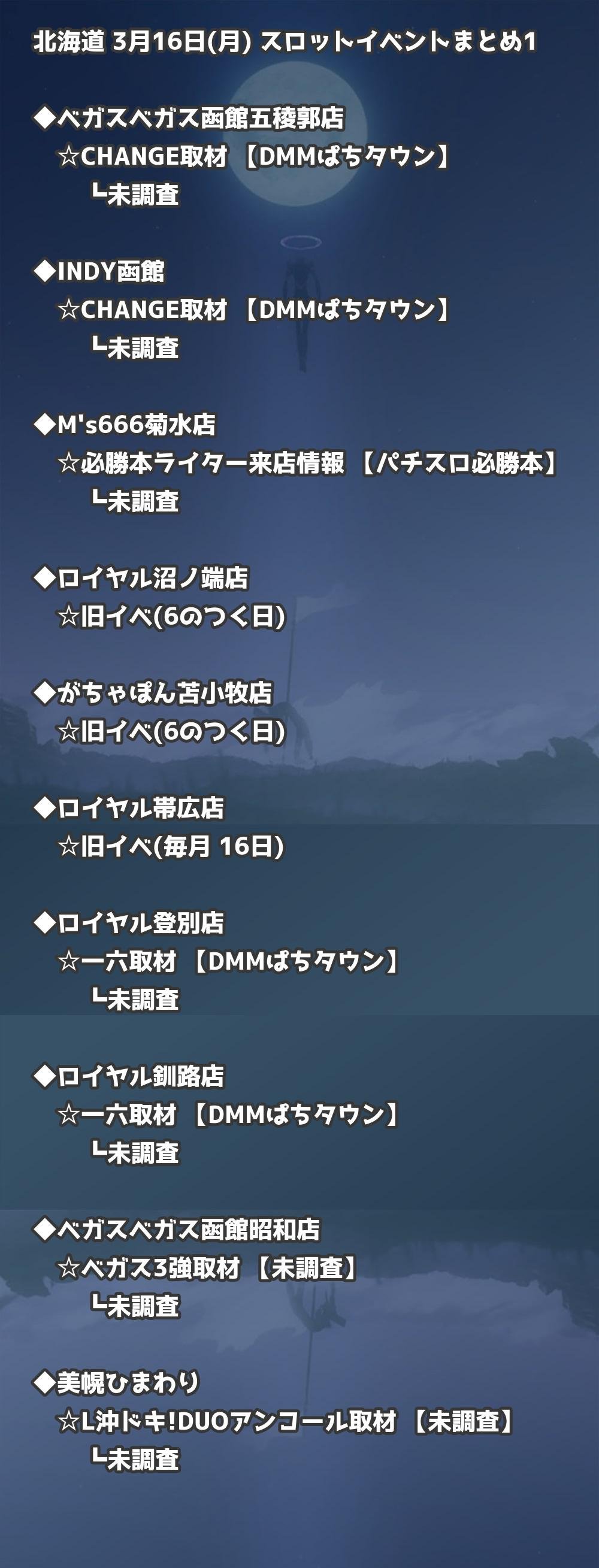 【北海道】3月16日(月) パチンコホールイベント取材まとめ記事です。