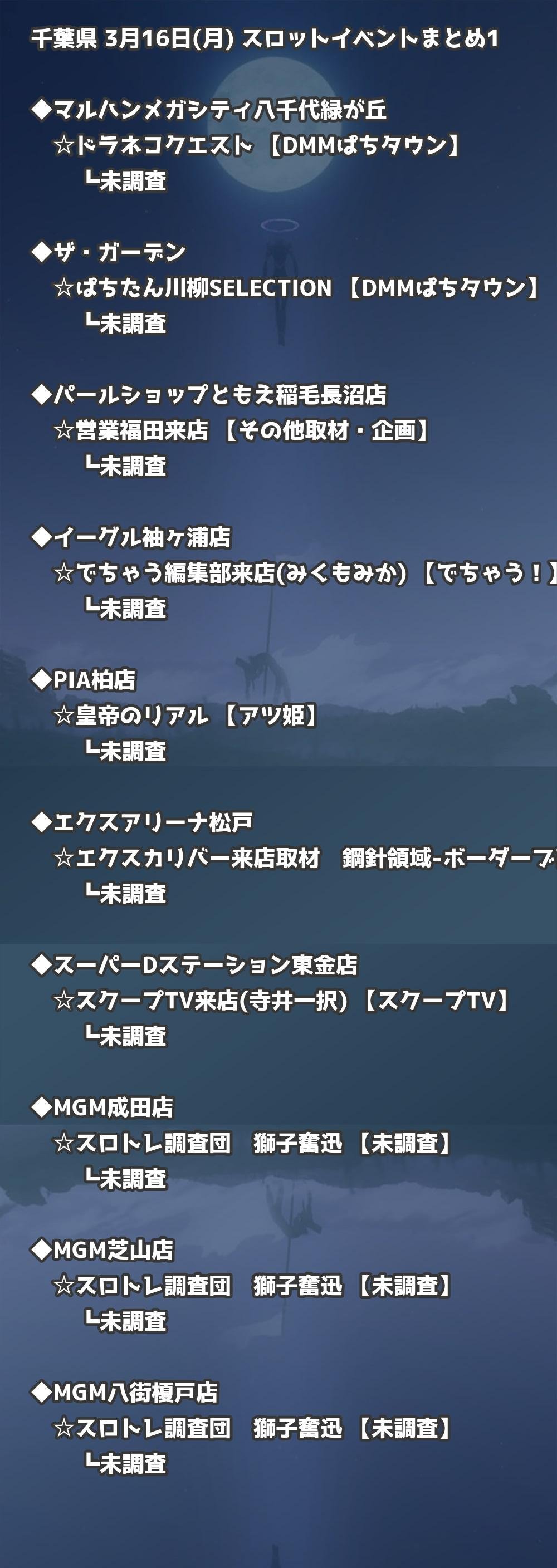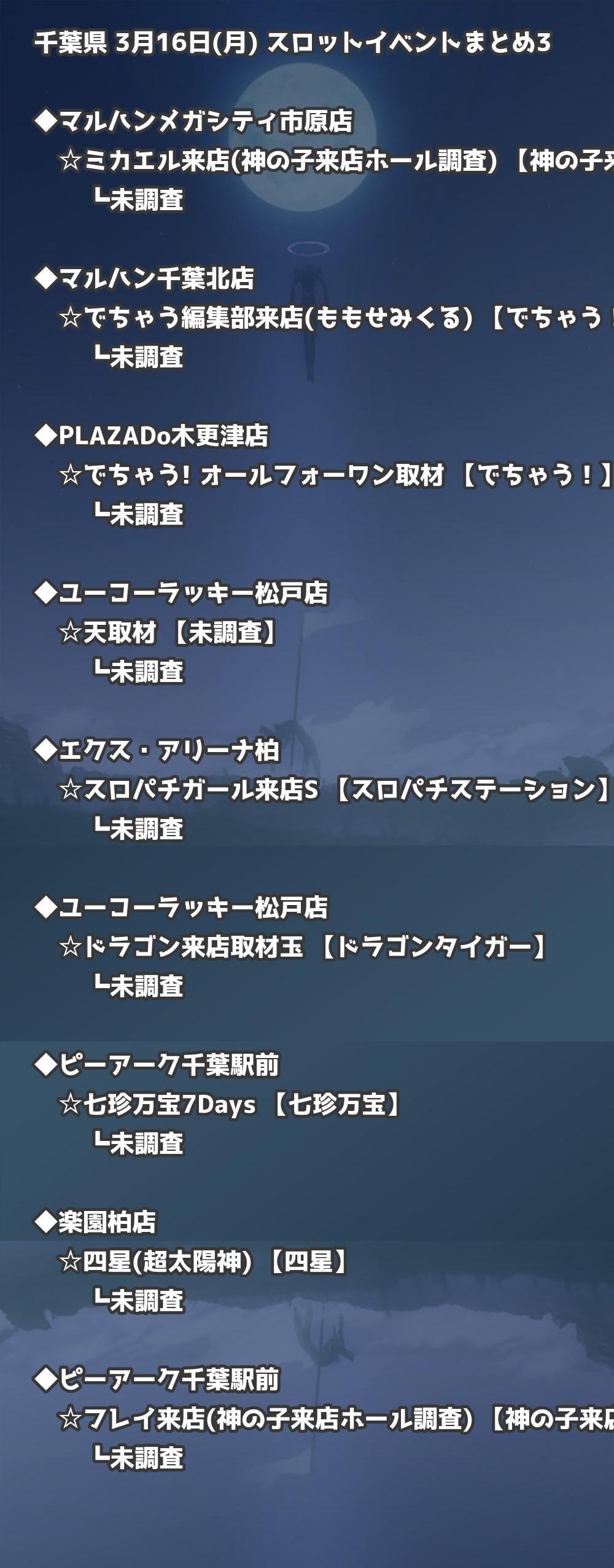 📊 千葉県 3月16日(月) 勝てるパチンコ・スロット取材店舗一覧|おすすめ順
