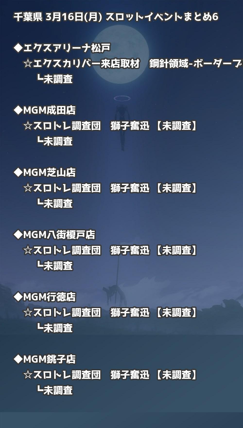 | MGM行徳店 | スロトレ調査団 獅子奮迅 | 未調査 |