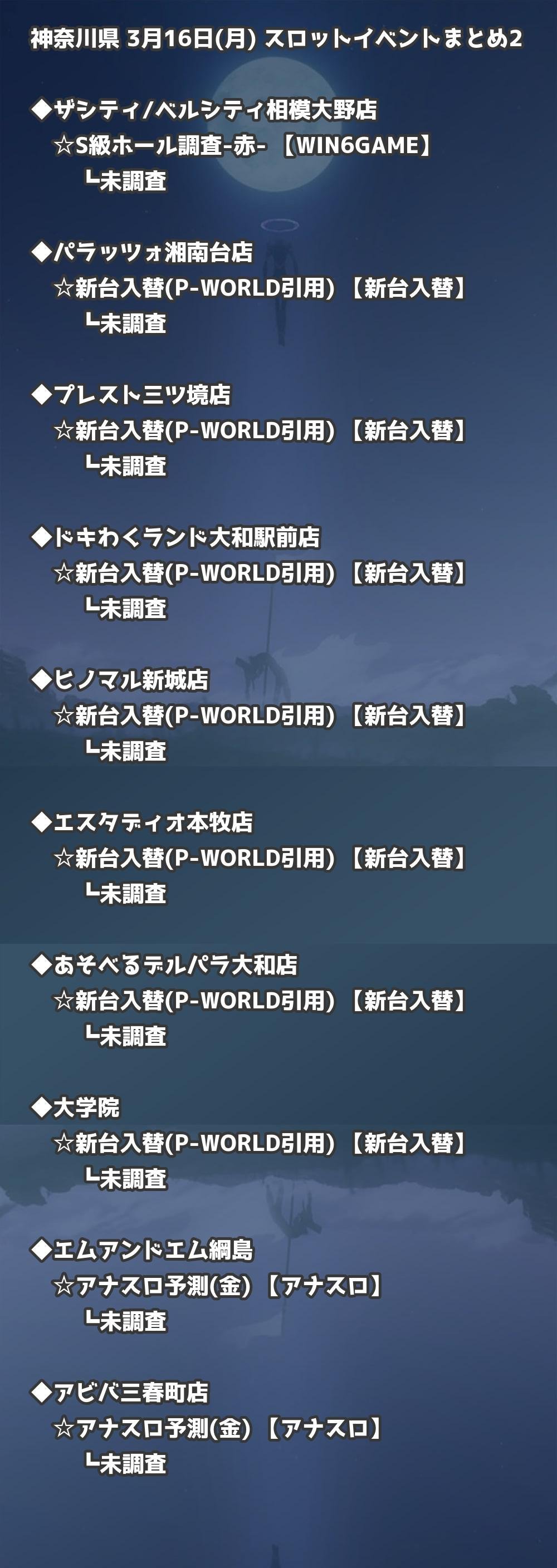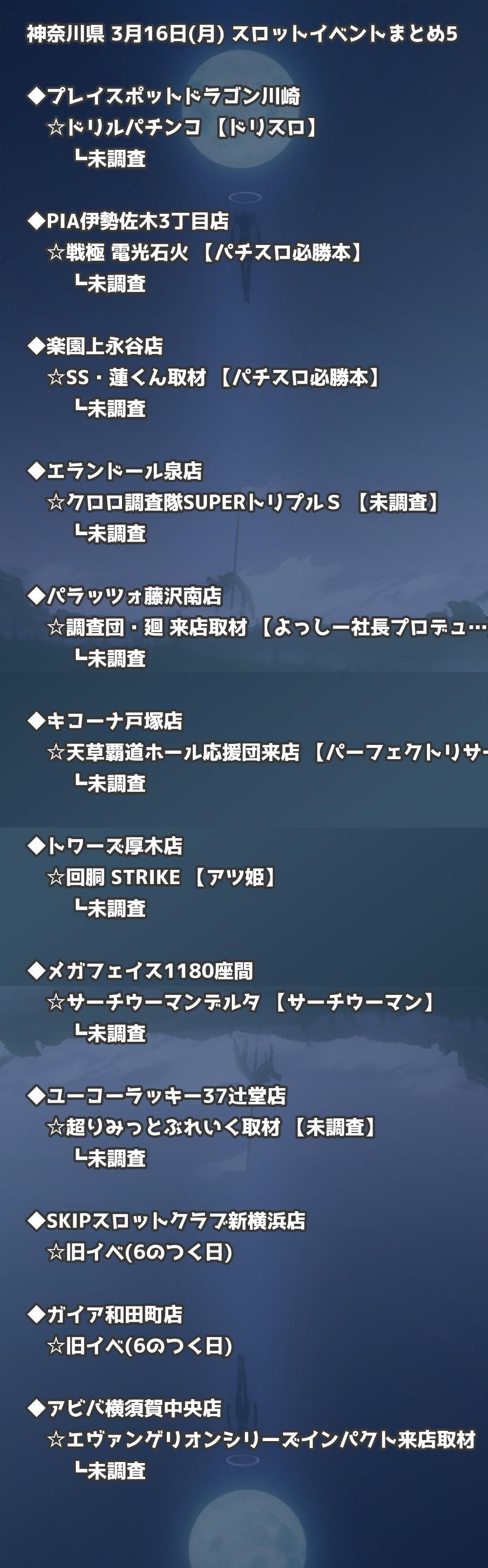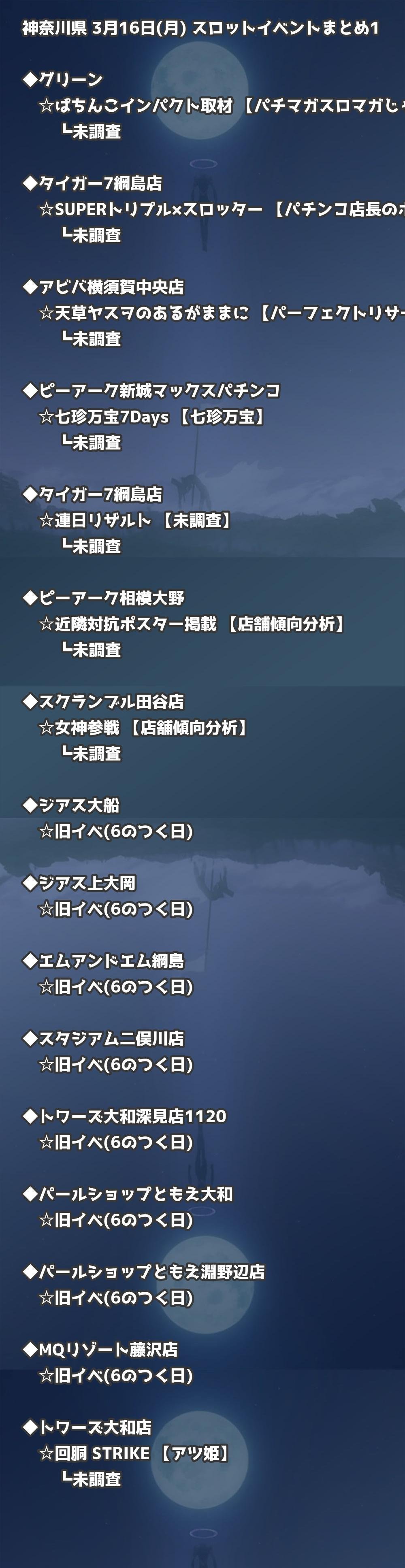 【神奈川県】3月16日(月) パチンコホールイベント取材まとめ記事です。