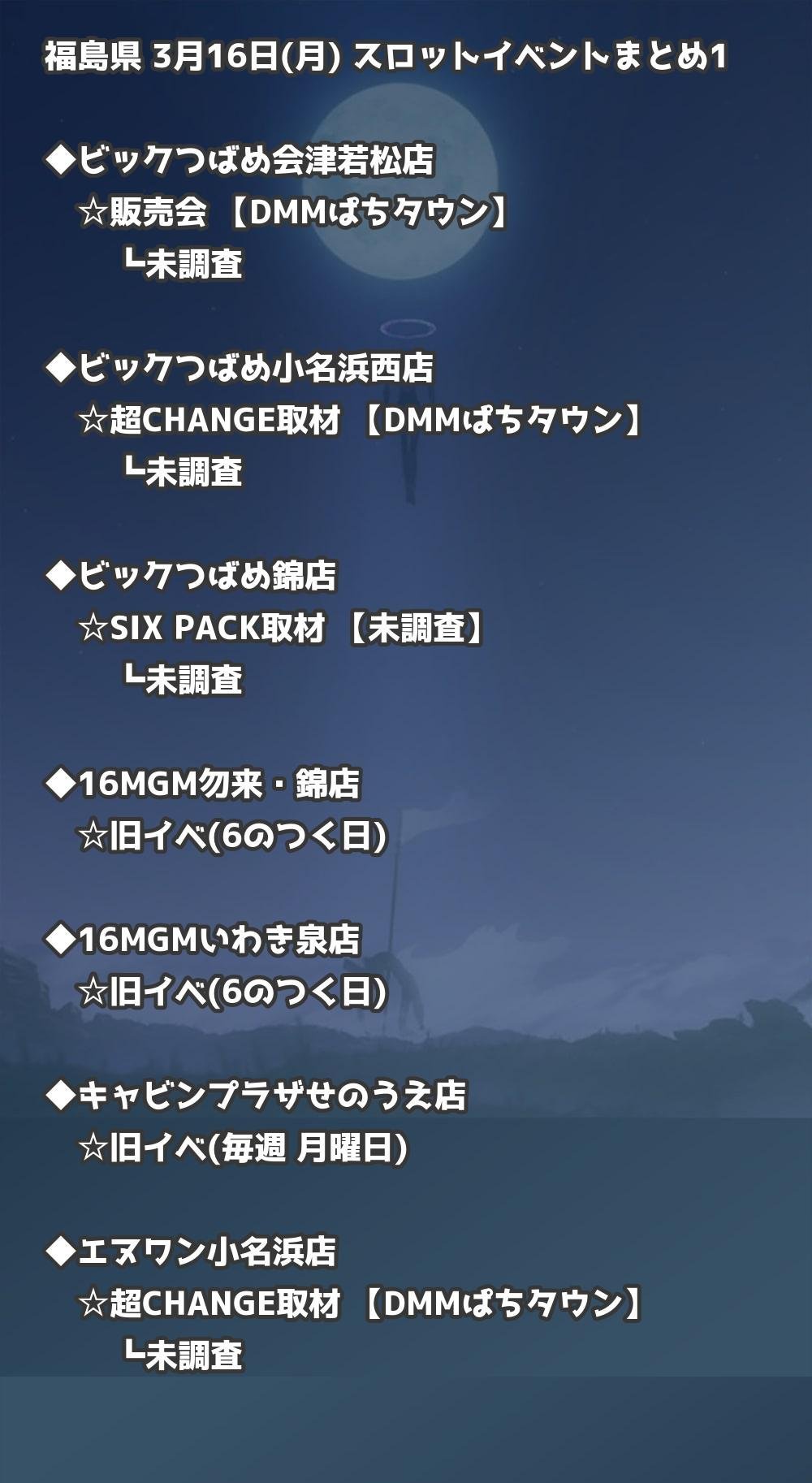 【福島県】3月16日(月) パチンコホールイベント取材まとめ記事です。