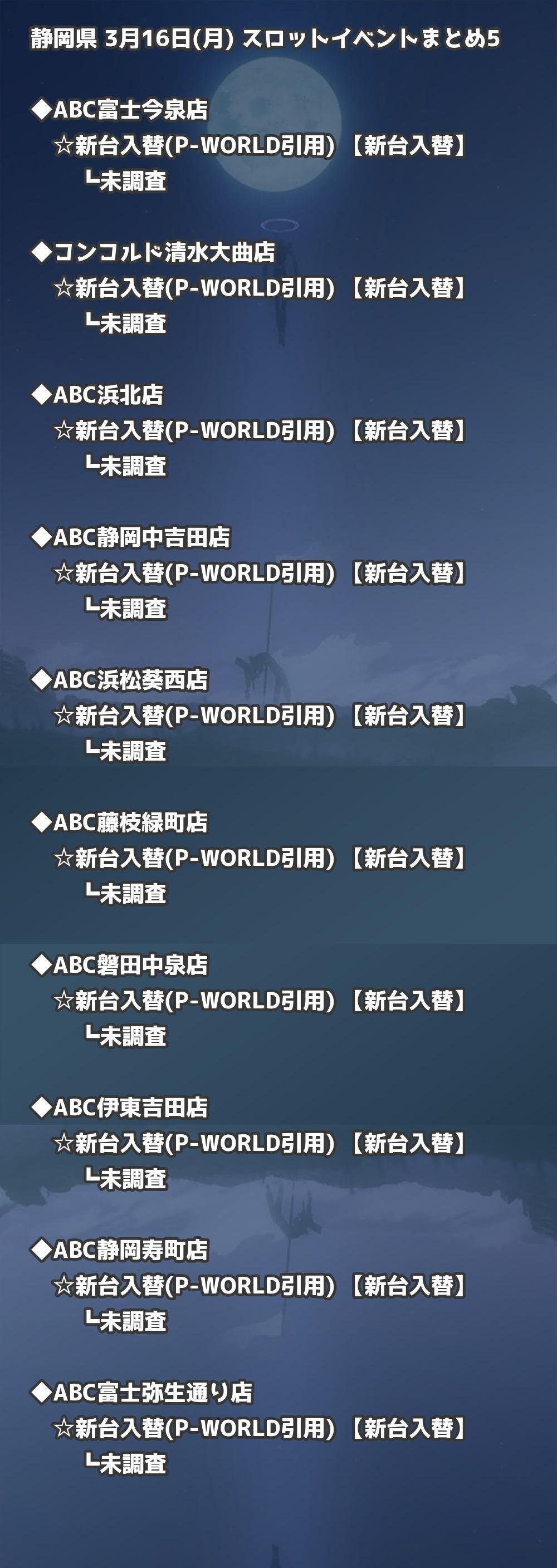 | ABC静岡中吉田店 | 新台入替(P-WORLD引用) | 新台入替 |