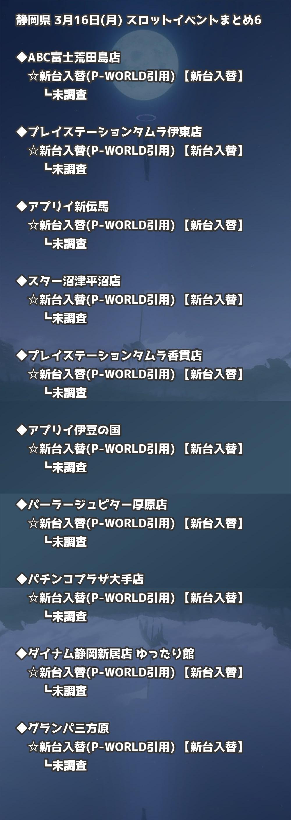 | プレイステーションタムラ伊東店 | 新台入替(P-WORLD引用) | 新台入替 |