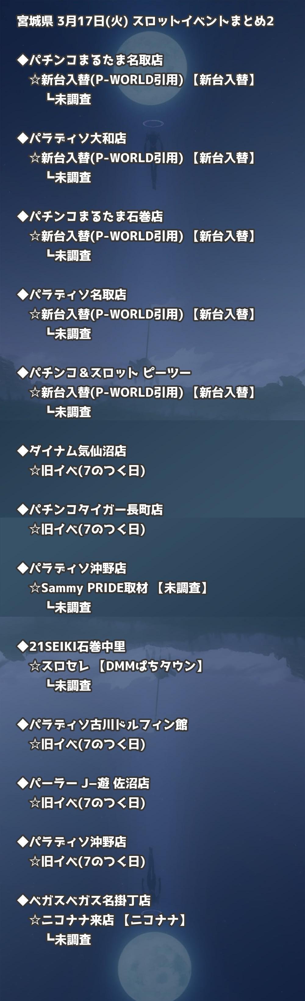 【宮城県】3月17日(火) パチンコホールイベント取材まとめ記事です。