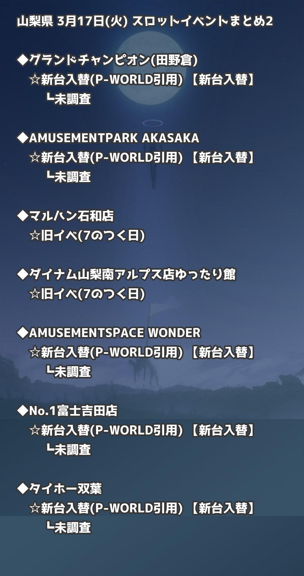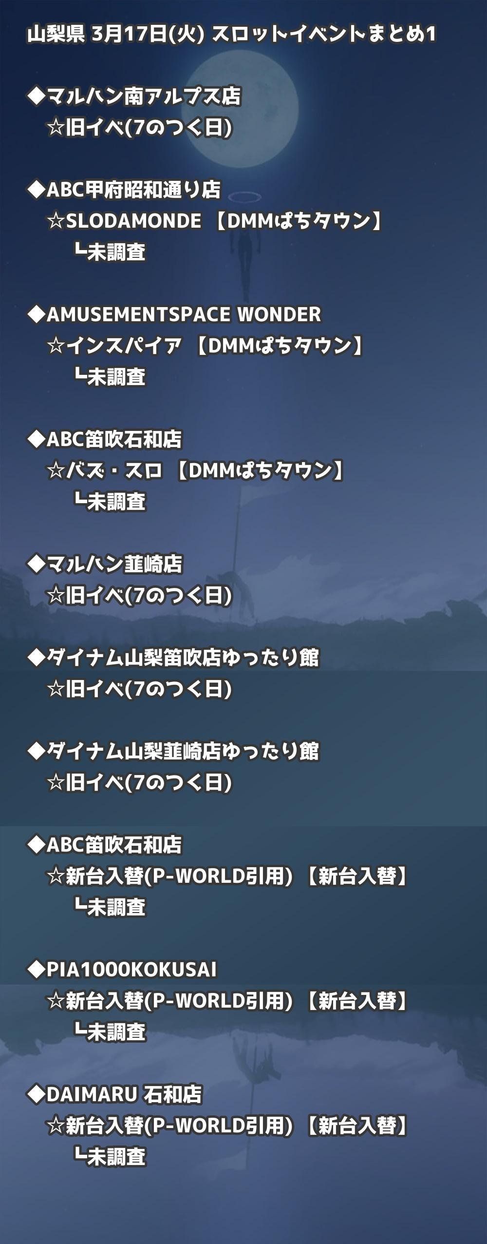 【山梨県】3月17日(火) パチンコホールイベント取材まとめ記事です。