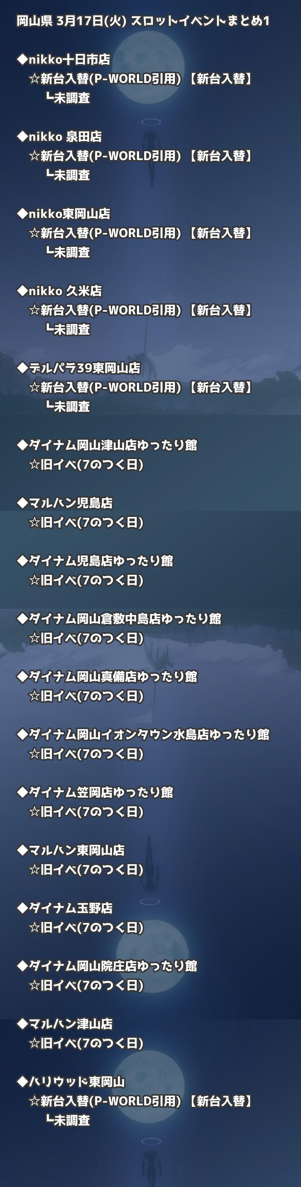 【岡山県】3月17日(火) パチンコホールイベント取材まとめ記事です。