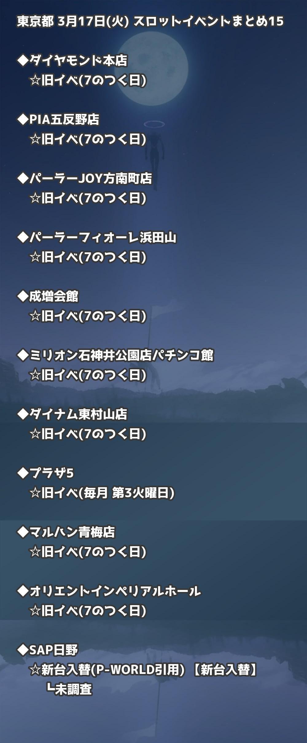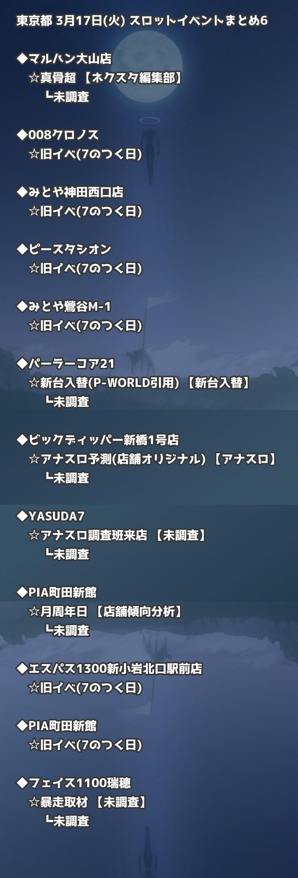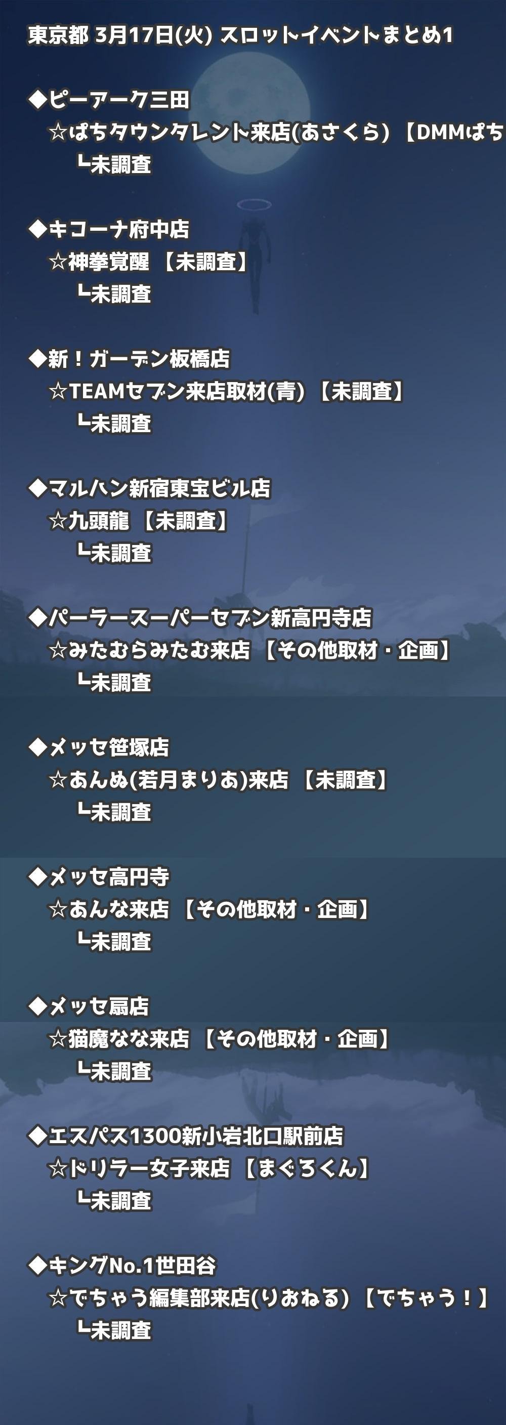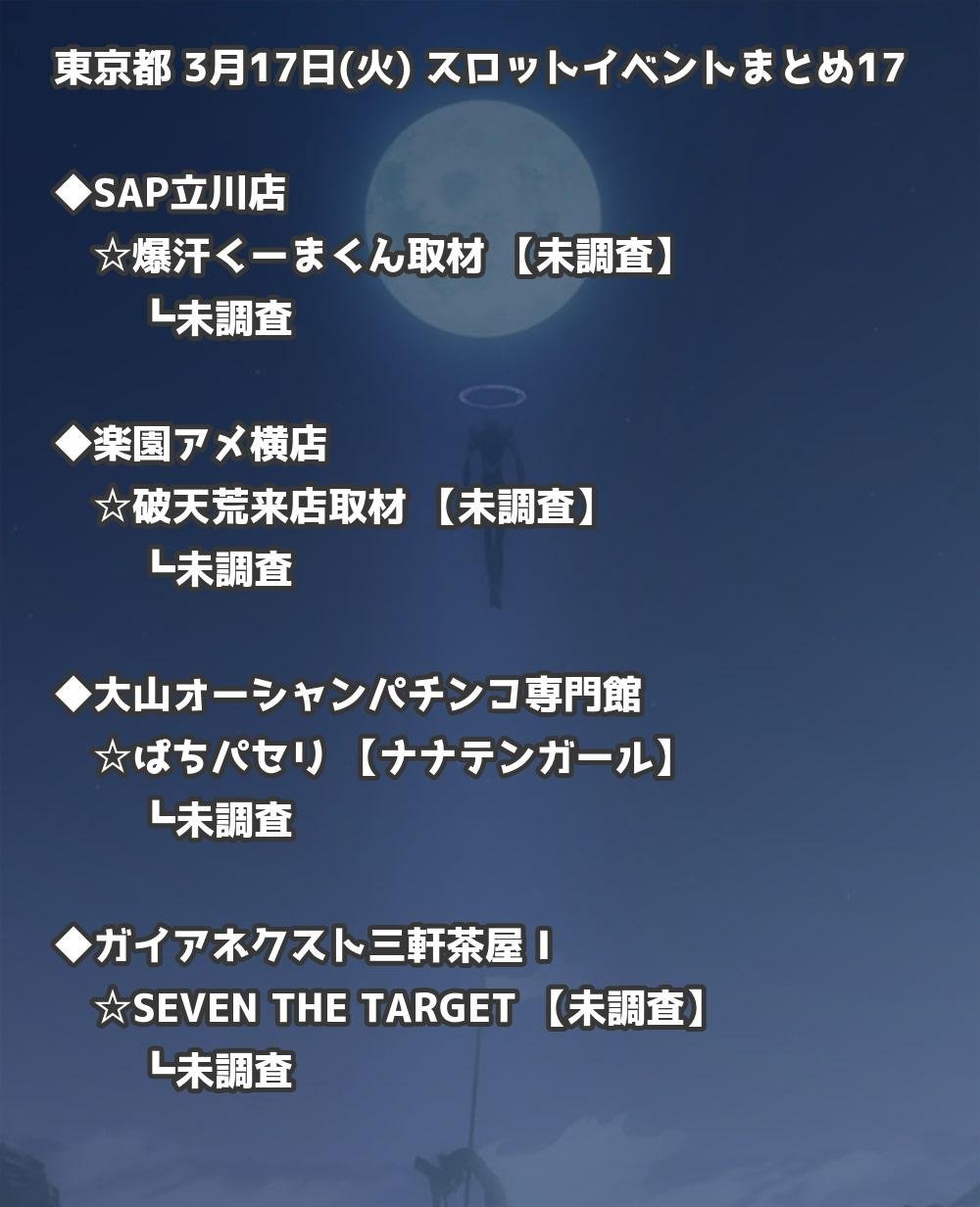【東京都】3月17日(火) パチンコホールイベント取材まとめ記事です。