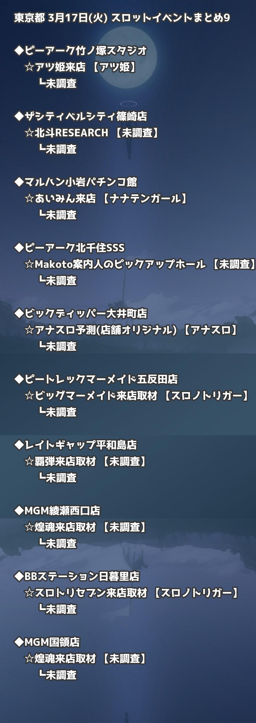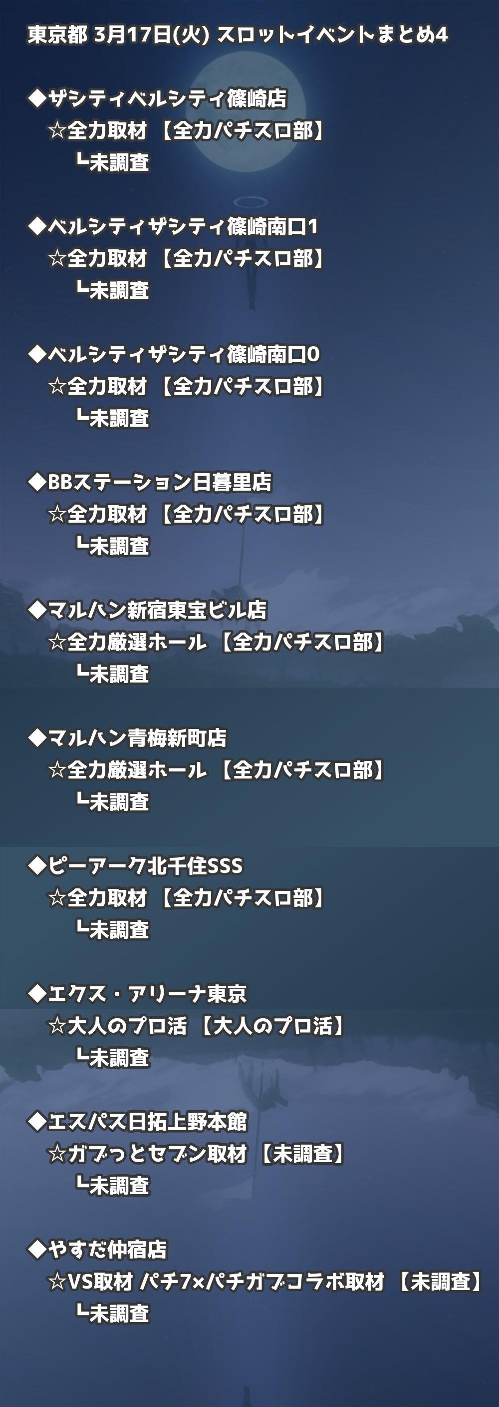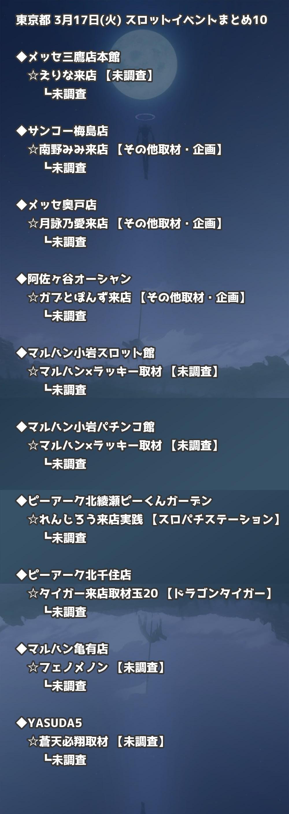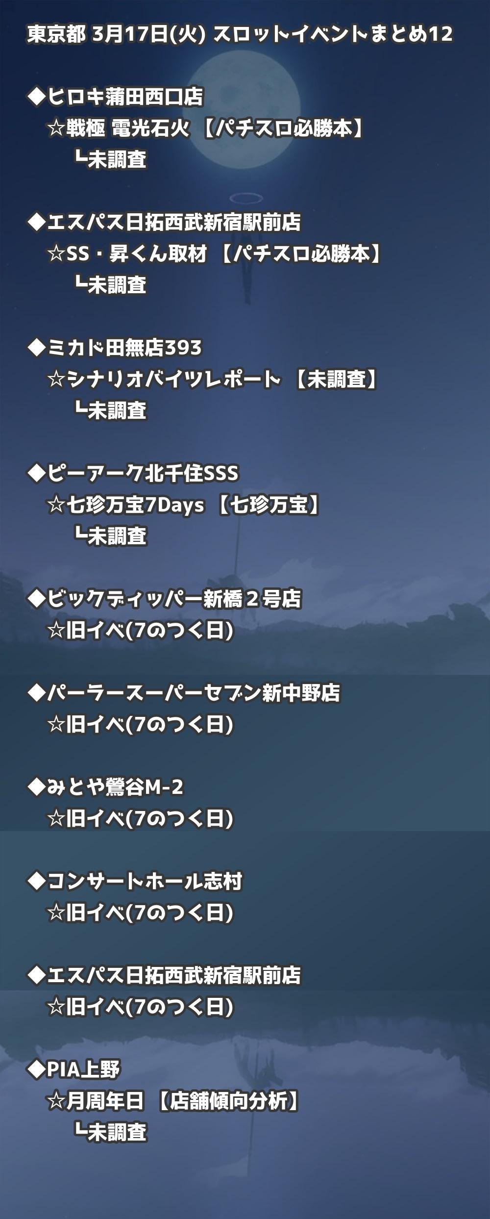 【東京都】3月17日(火) パチンコホールイベント取材まとめ記事です。