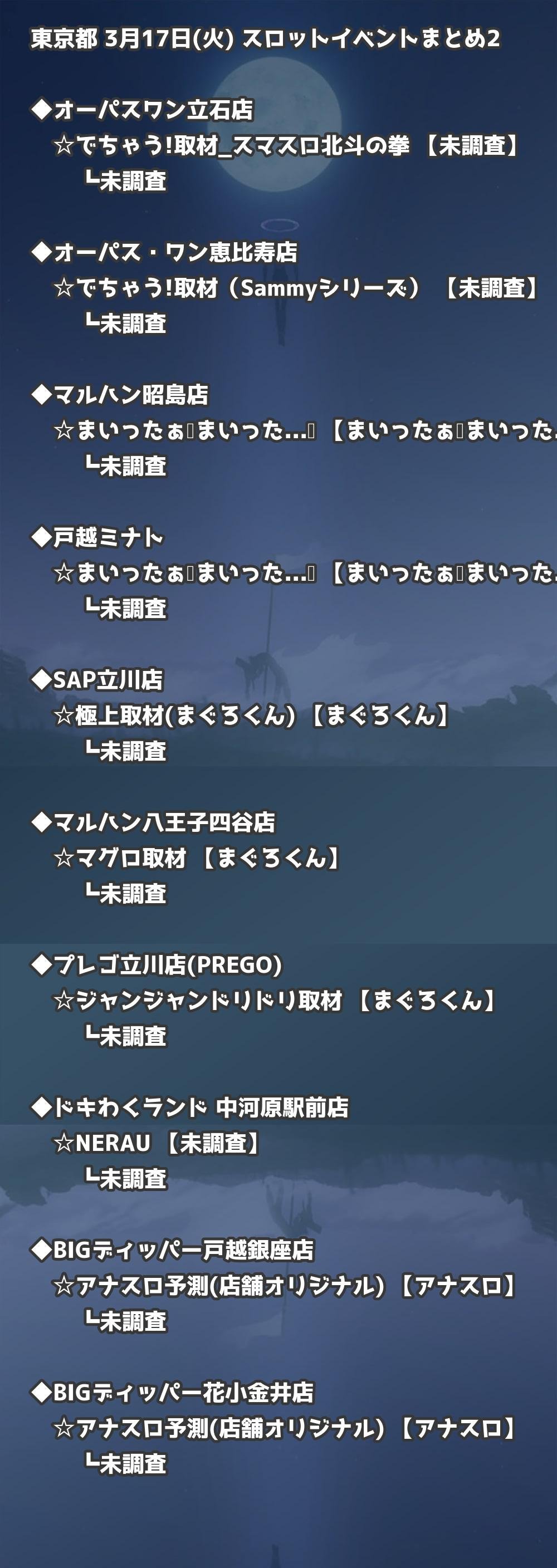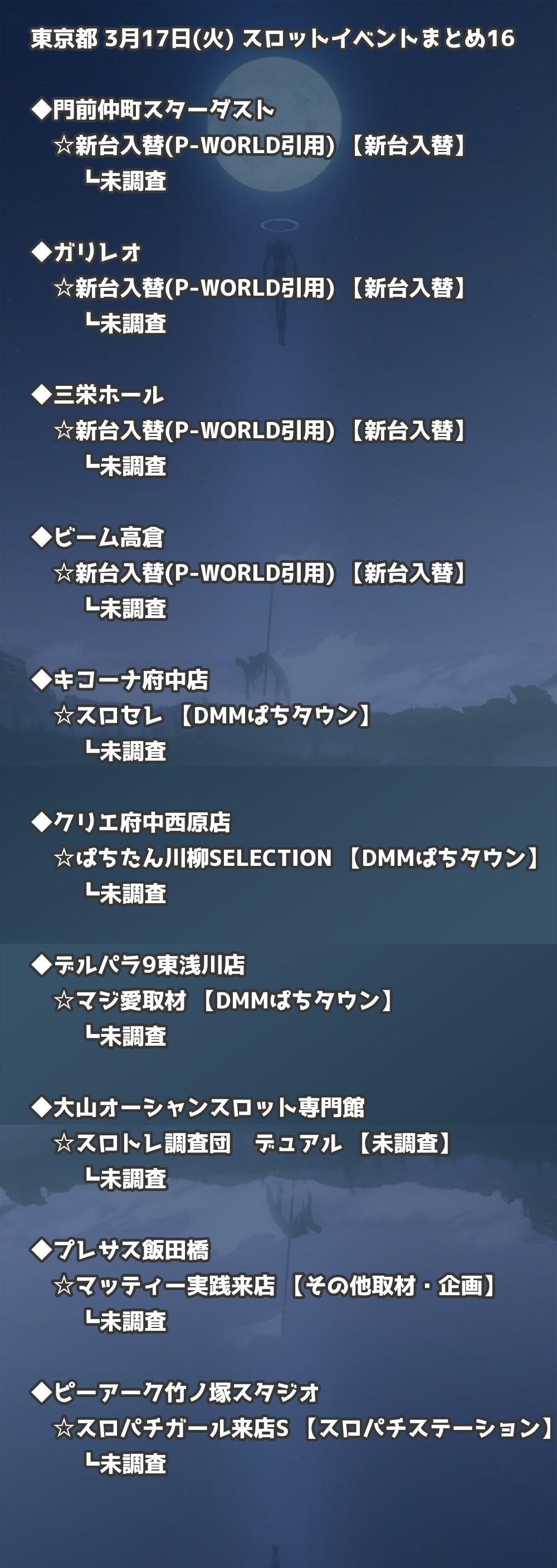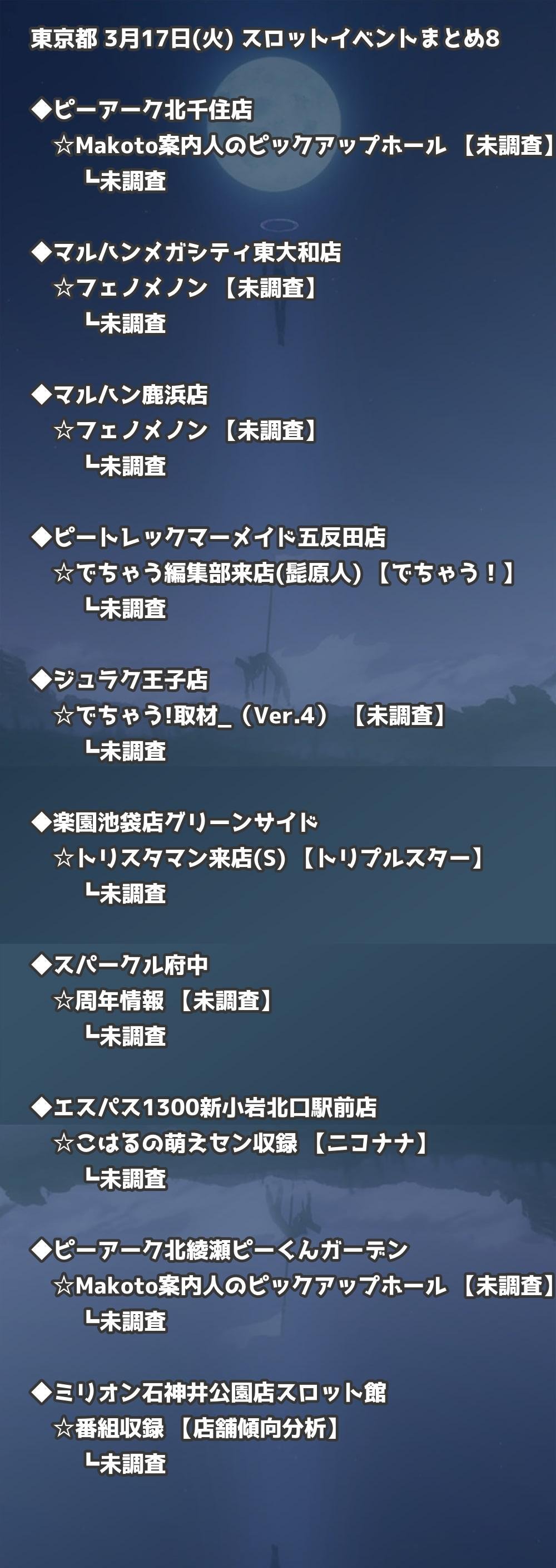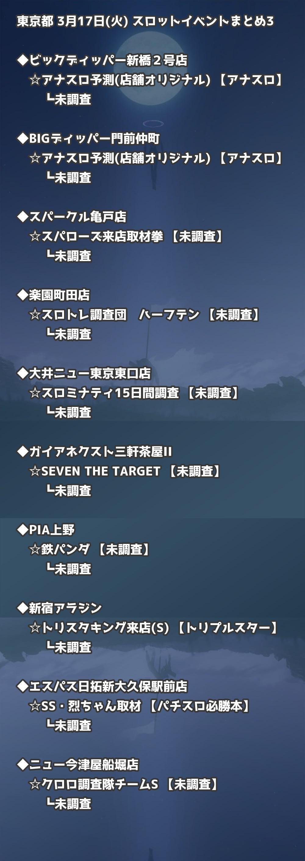 【東京都】3月17日(火) パチンコホールイベント取材まとめ記事です。
