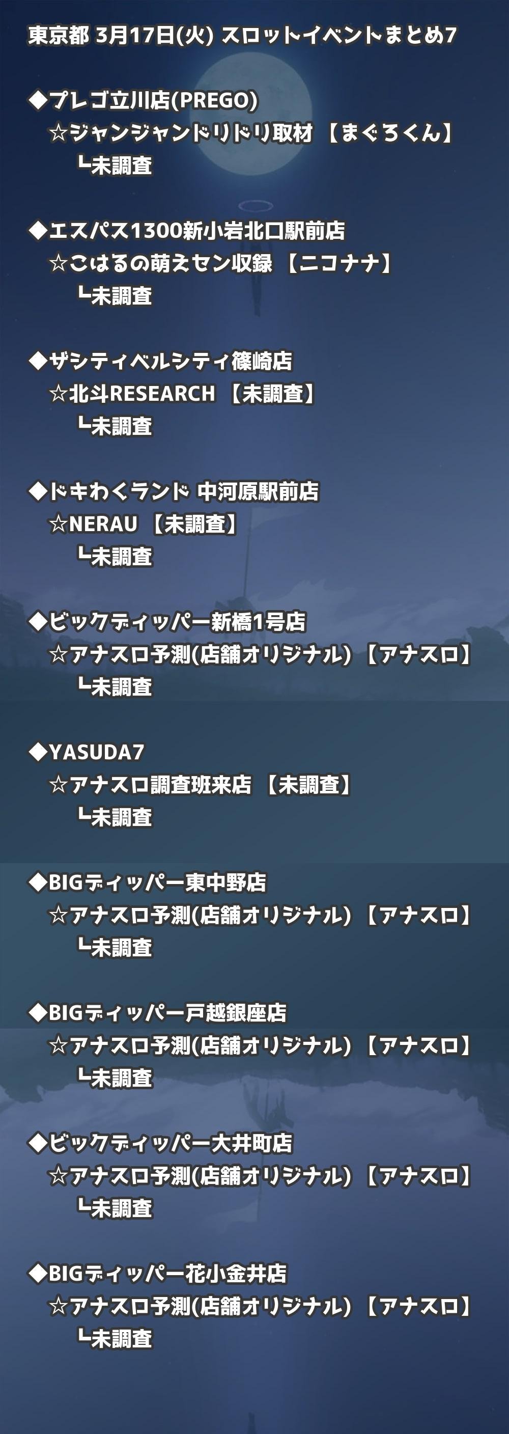 📊 東京都 3月17日(火) 勝てるパチンコ・スロット取材店舗一覧|おすすめ順