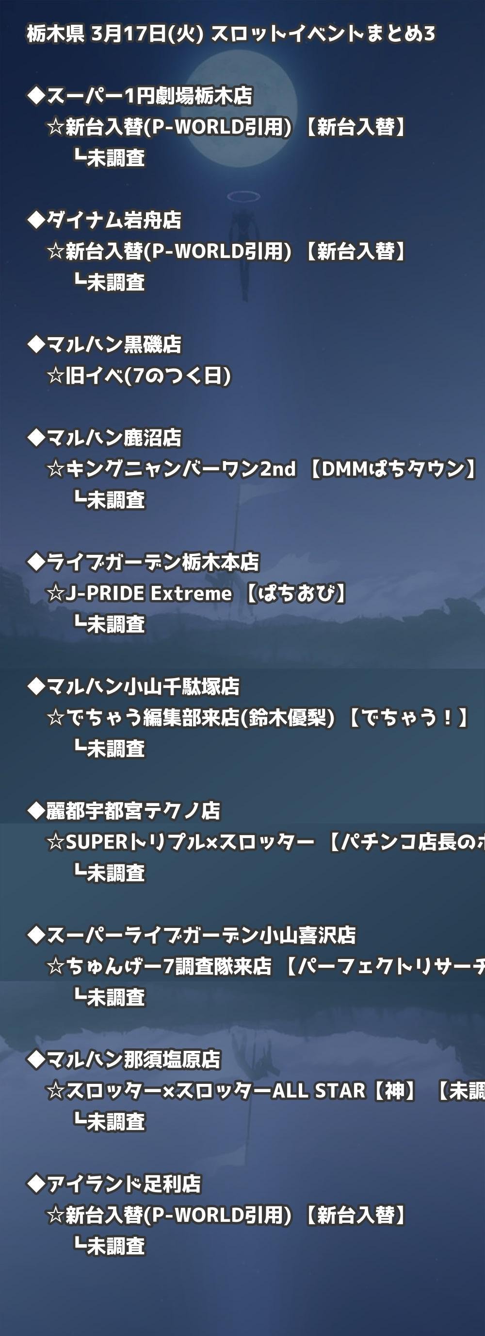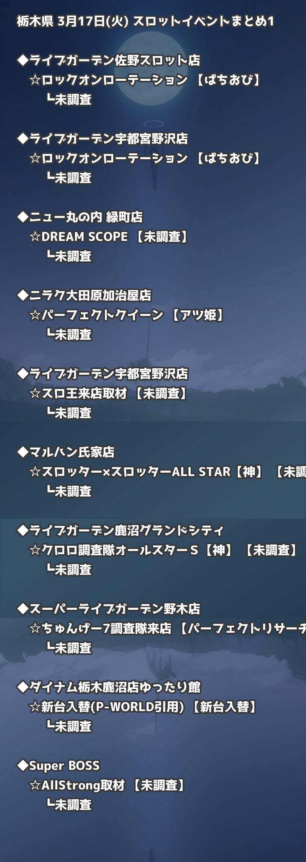 【栃木県】3月17日(火) パチンコホールイベント取材まとめ記事です。