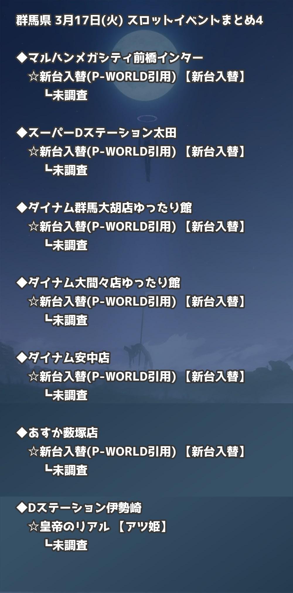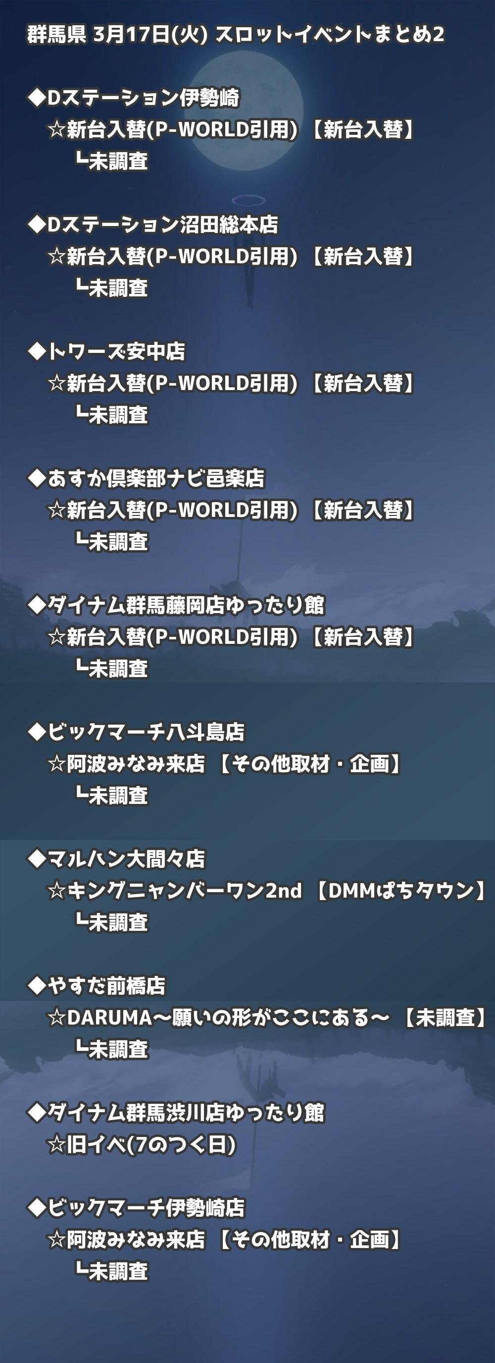 【群馬県】3月17日(火) パチンコホールイベント取材まとめ記事です。