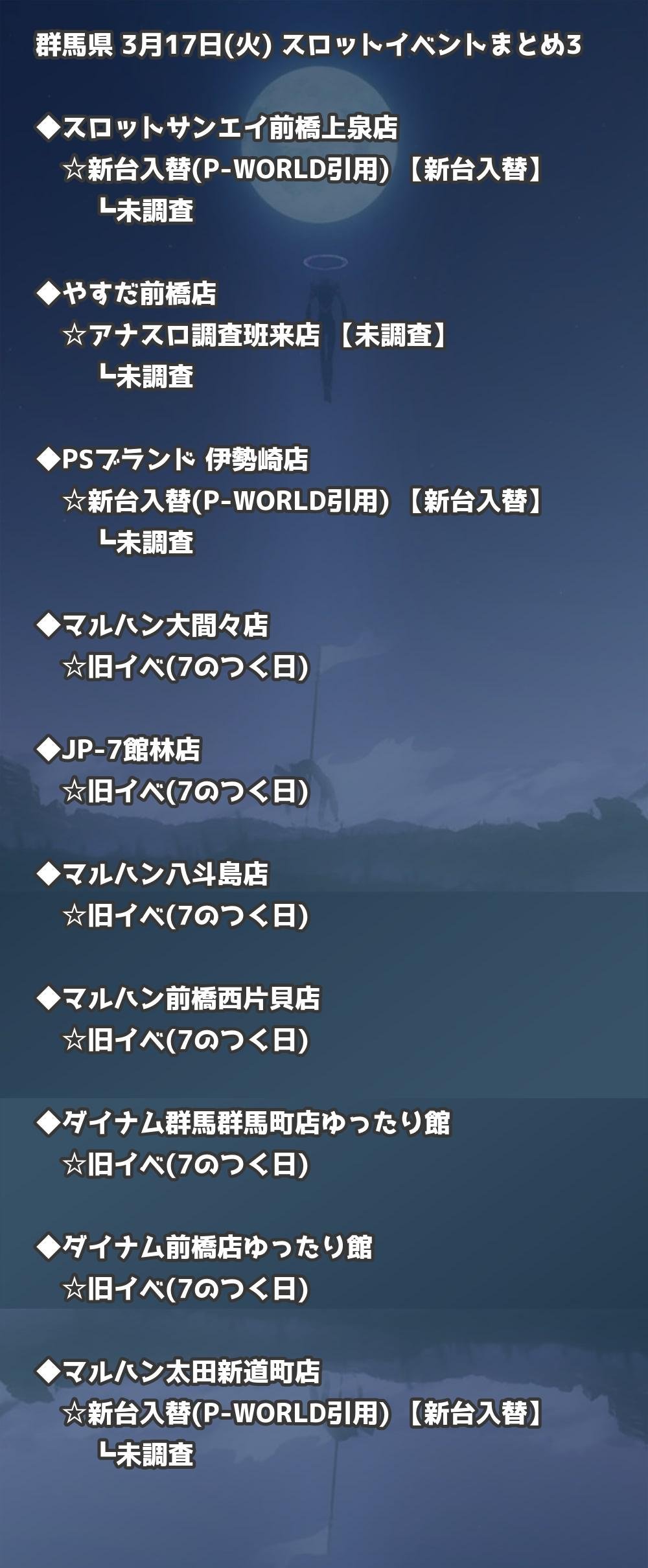 ※店舗結果掲載済 【群馬】3月17日(火) 今日のスロット・パチンコ激熱イベント取材まとめ