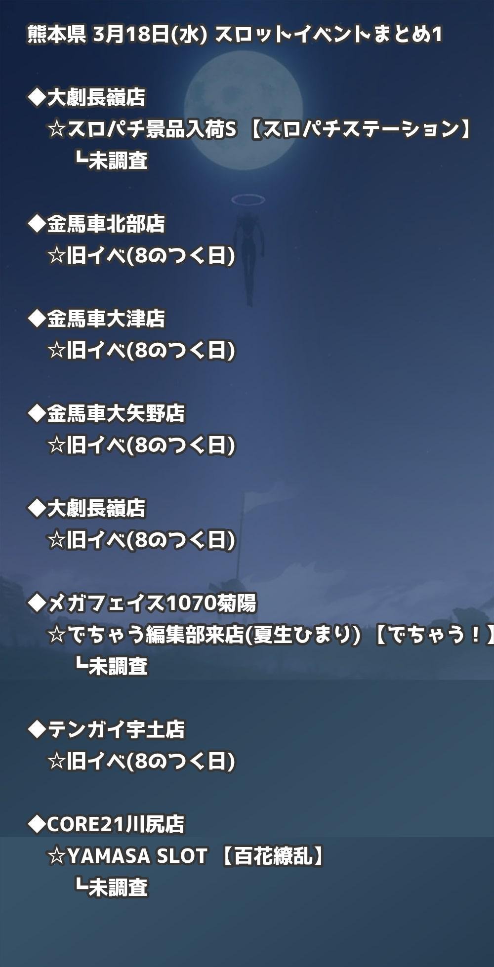 【熊本県】3月18日(水) パチンコホールイベント取材まとめ記事です。