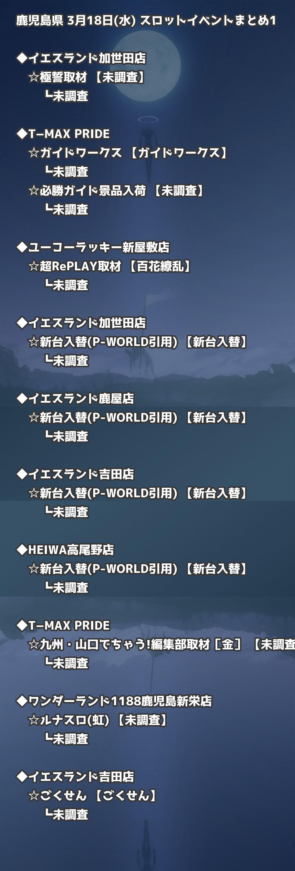 【鹿児島県】3月18日(水) パチンコホールイベント取材まとめ記事です。