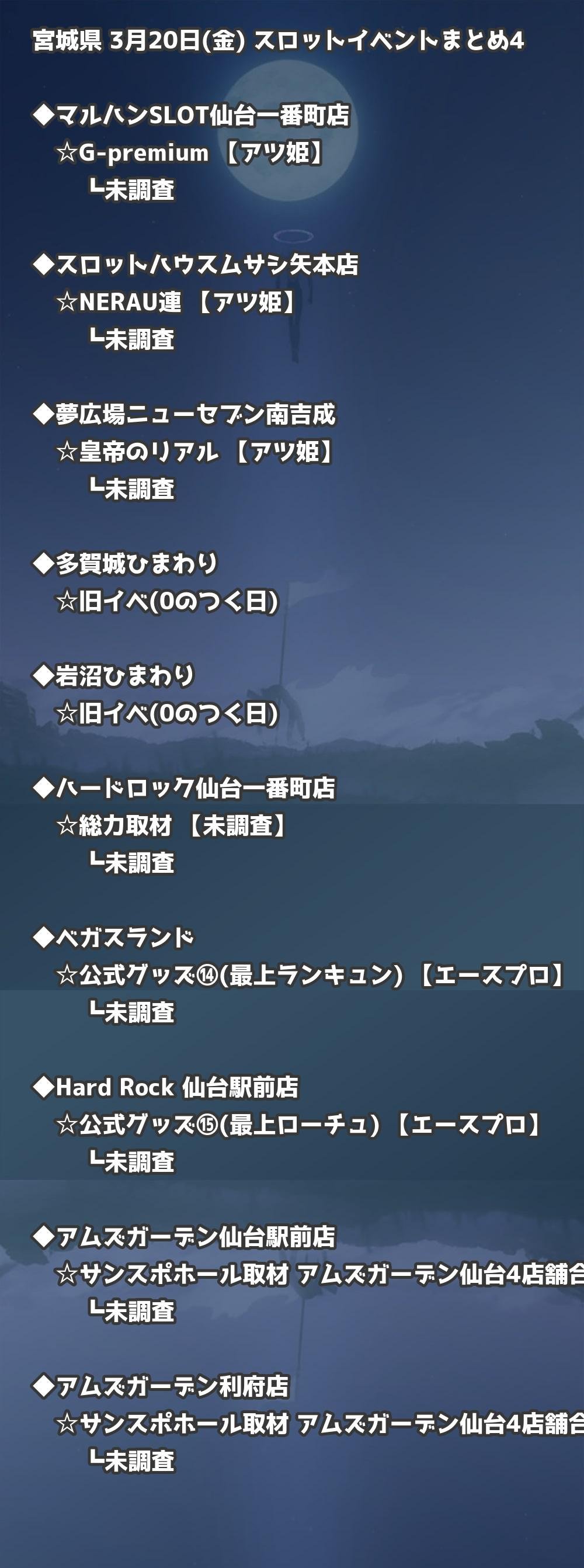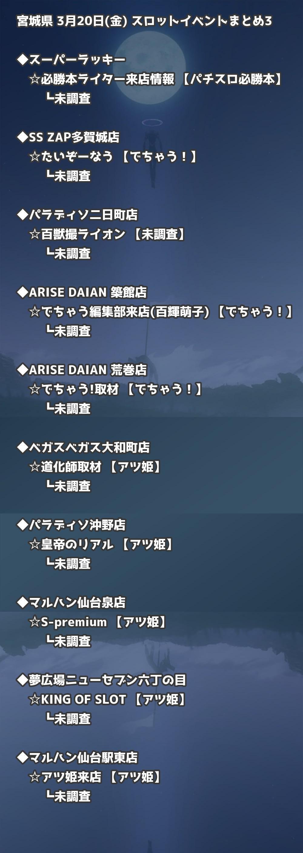 【宮城県】3月20日(金) パチンコホールイベント取材まとめ記事です。