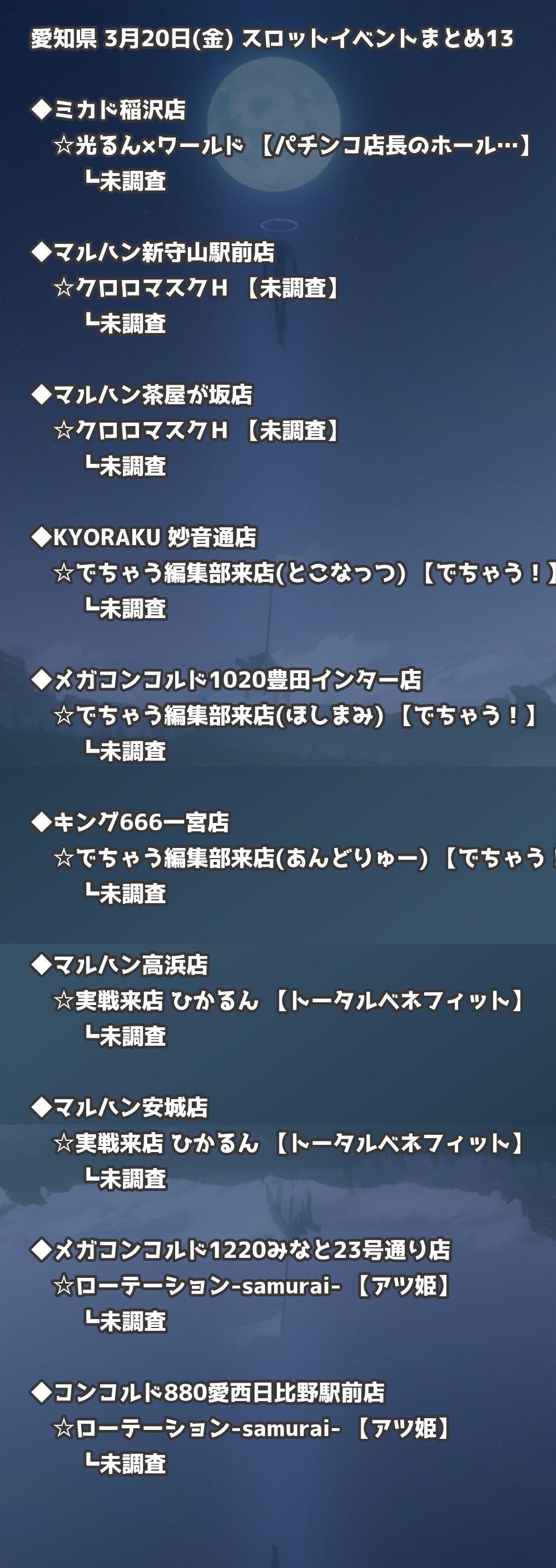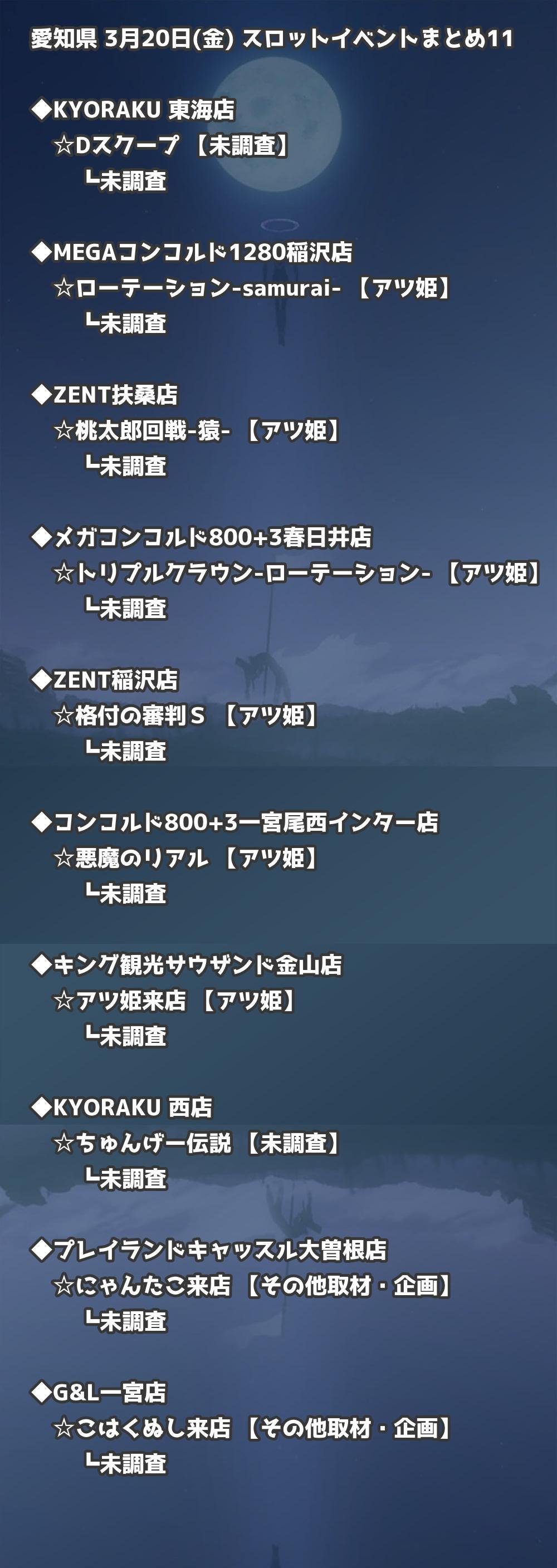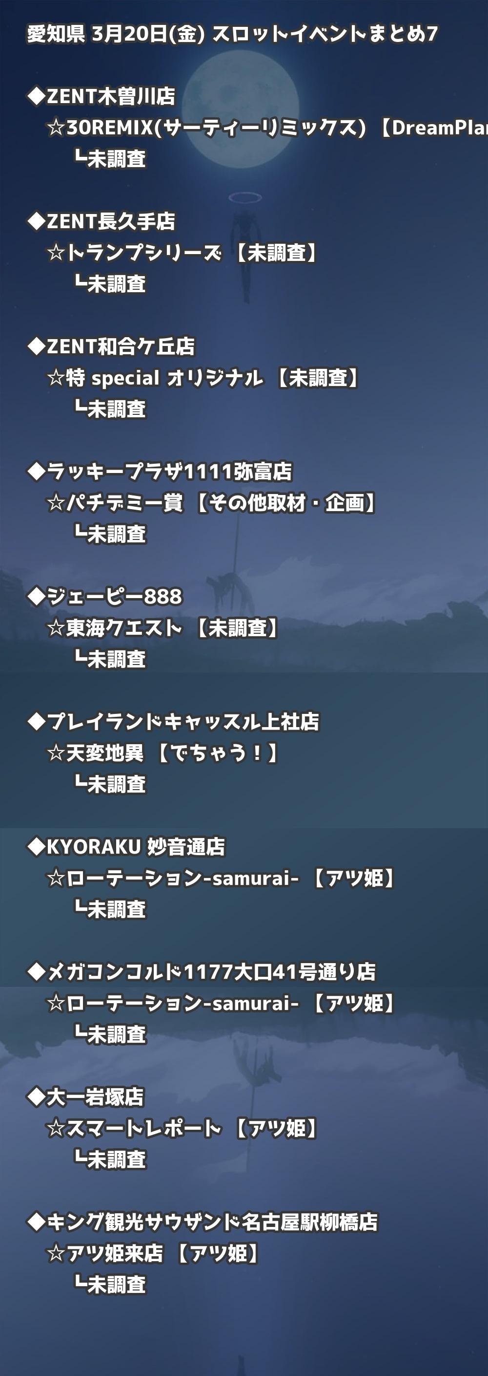 【愛知県】3月20日(金) パチンコホールイベント取材まとめ記事です。
