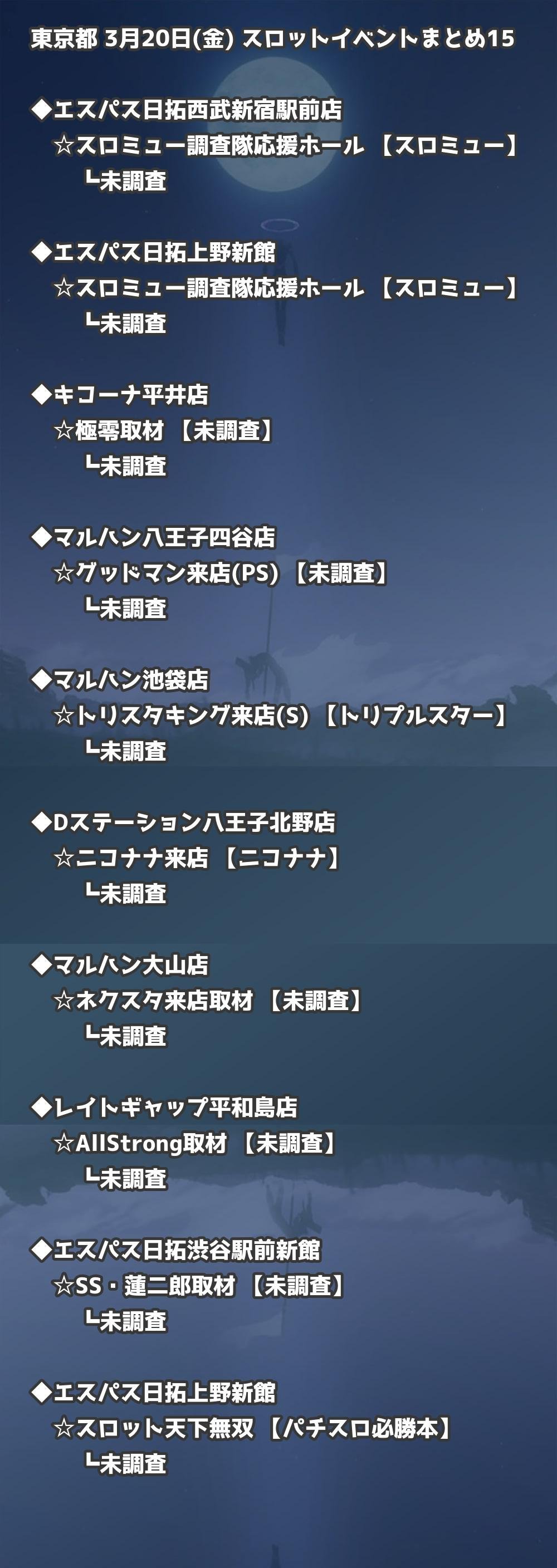 【東京都】3月20日(金) パチンコホールイベント取材まとめ記事です。