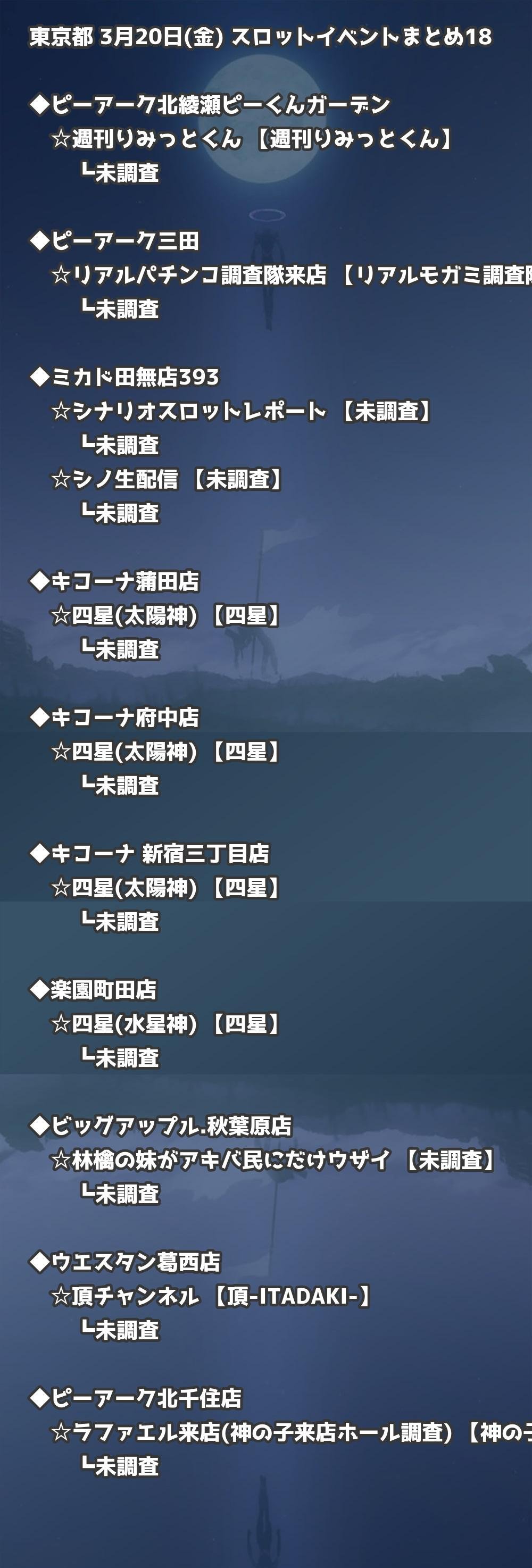 📊 東京都 3月20日(金) 勝てるパチンコ・スロット取材店舗一覧|おすすめ順