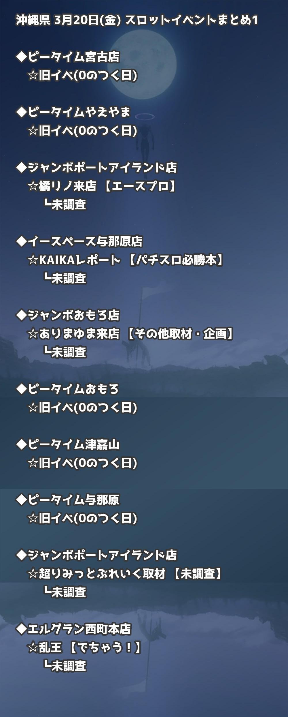 【沖縄県】3月20日(金) パチンコホールイベント取材まとめ記事です。