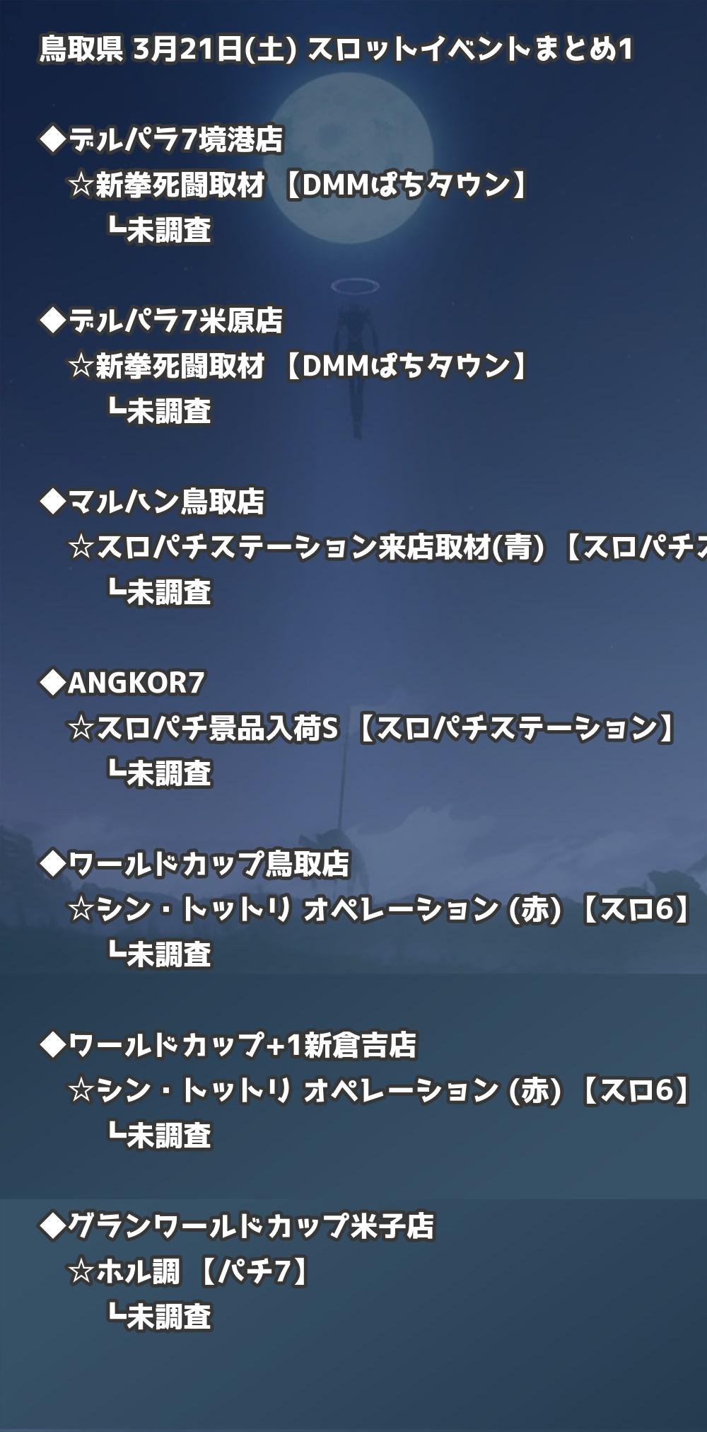 📊 鳥取県 3月21日(土) 勝てるパチンコ・スロット取材店舗一覧|おすすめ順