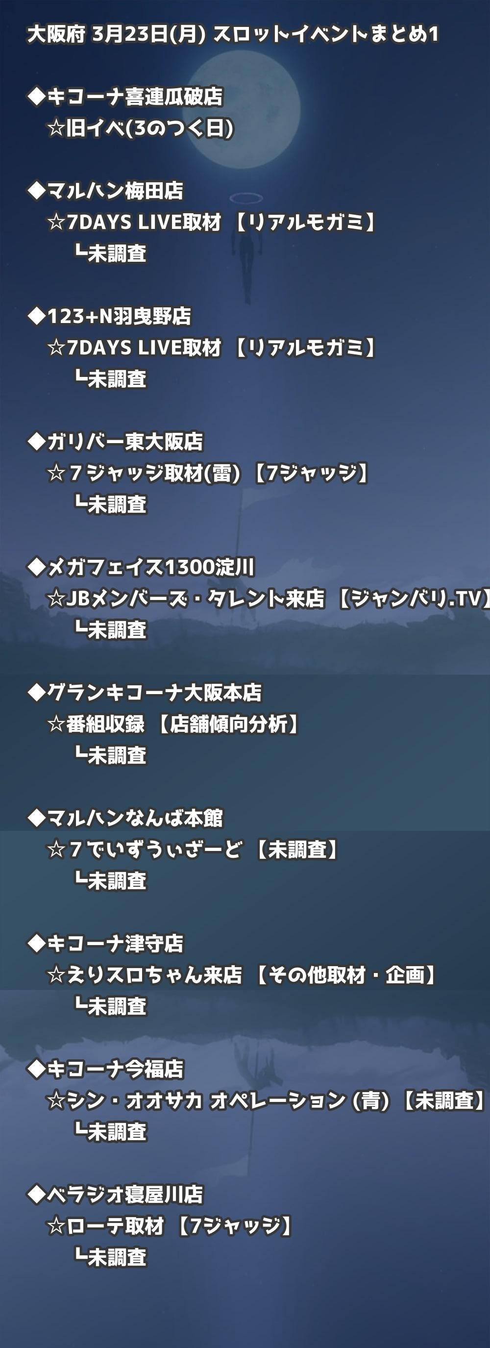 📊 大阪府 3月23日(月) 勝てるパチンコ・スロット取材店舗一覧|おすすめ順