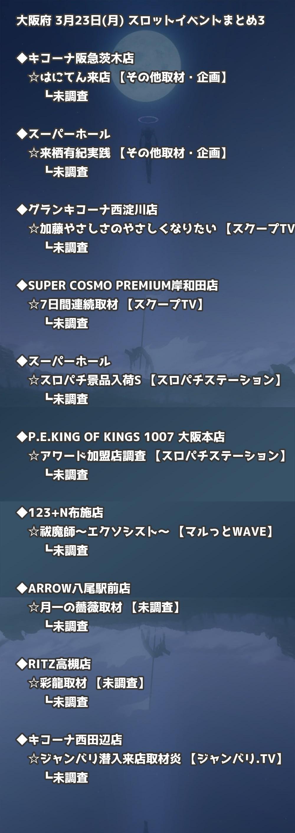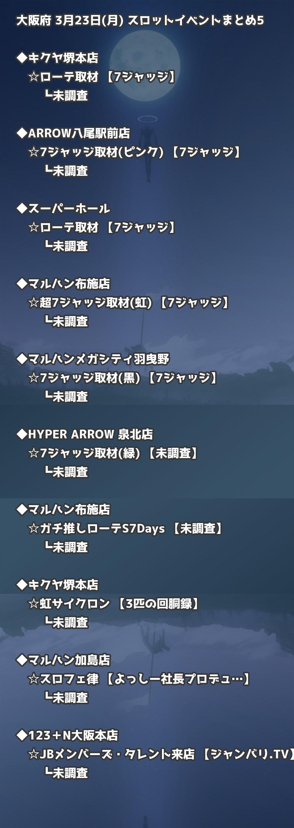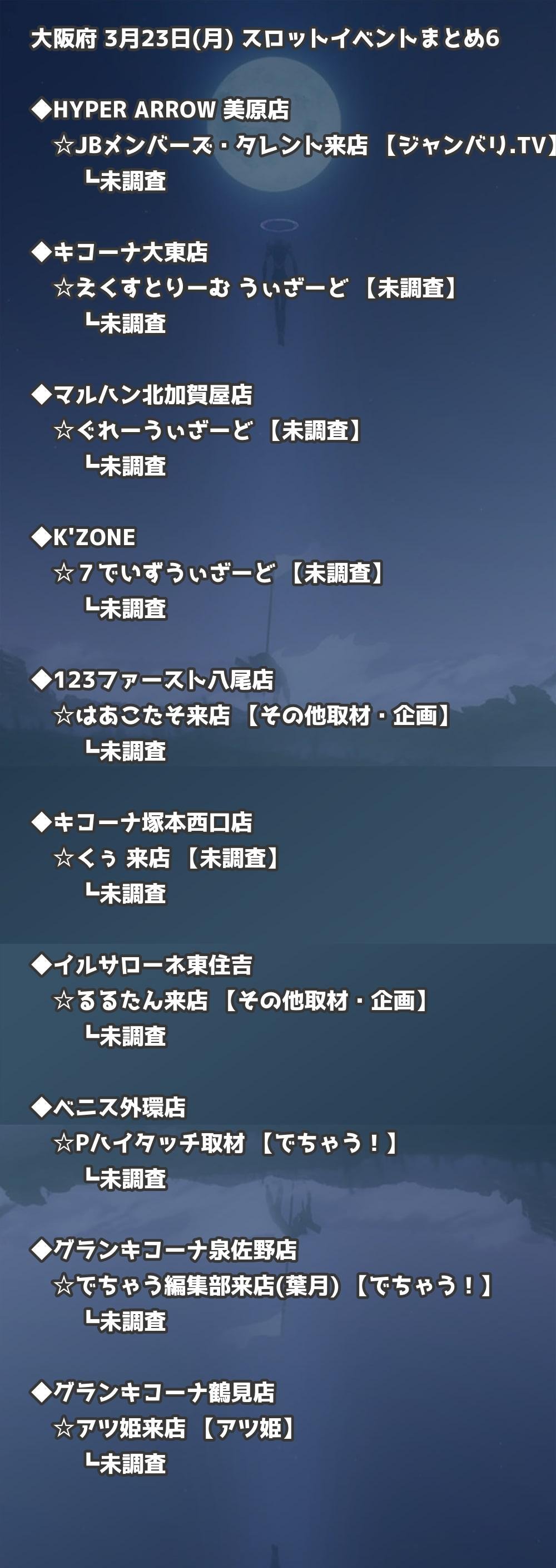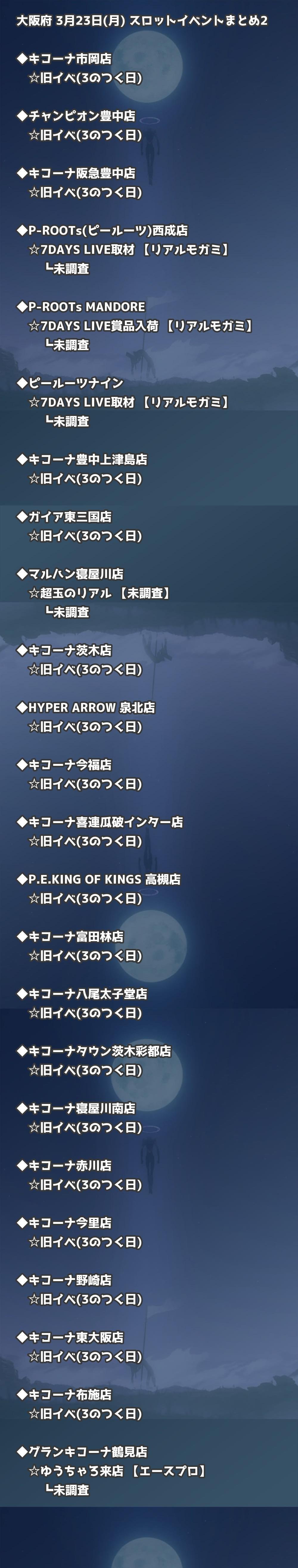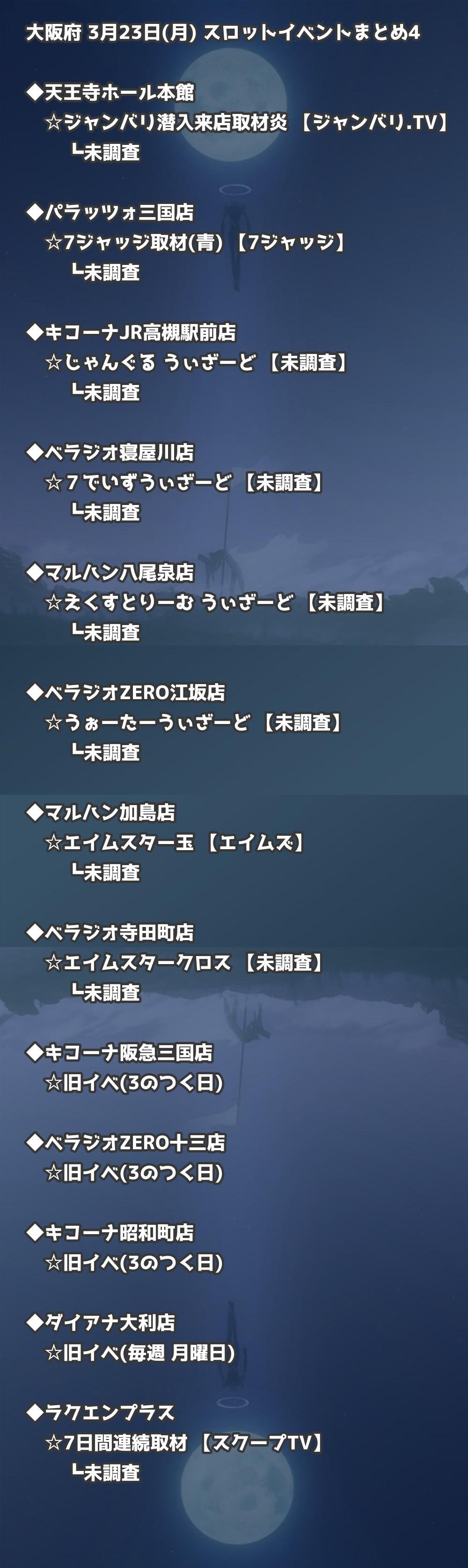 【大阪府】3月23日(月) パチンコホールイベント取材まとめ記事です。