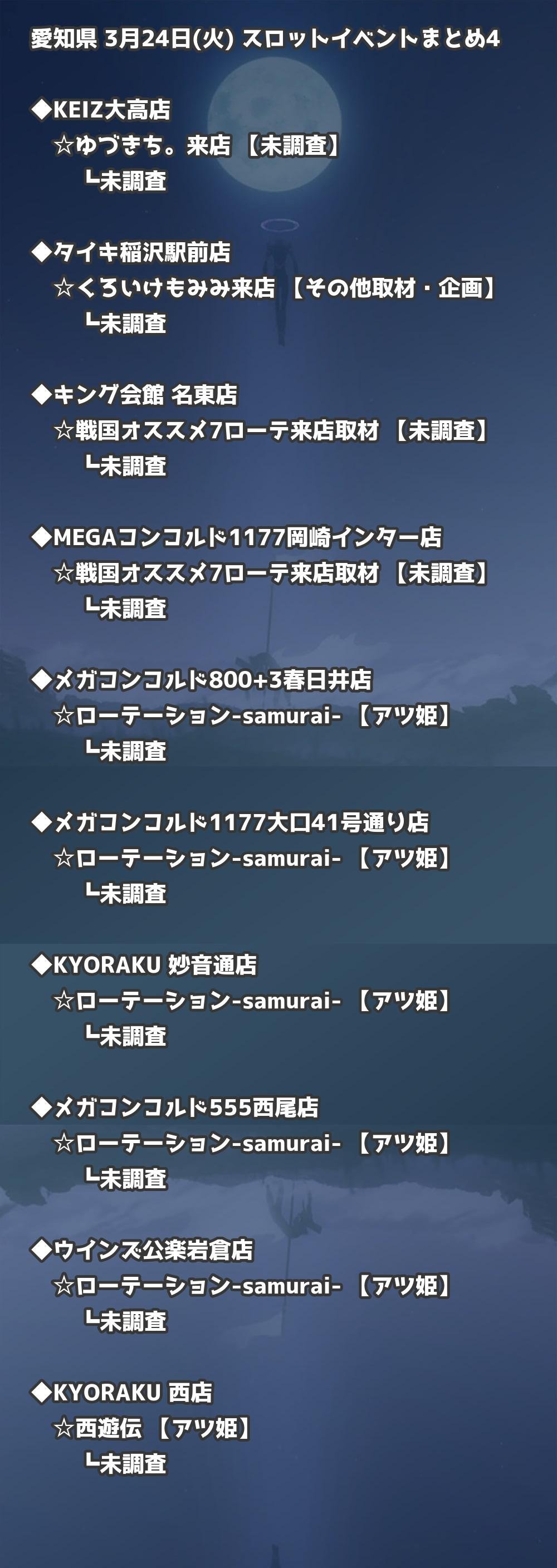 📊 愛知県 3月24日(火) 勝てるパチンコ・スロット取材店舗一覧|おすすめ順