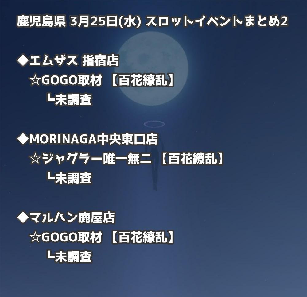 【鹿児島県】3月25日(水) パチンコホールイベント取材まとめ記事です。