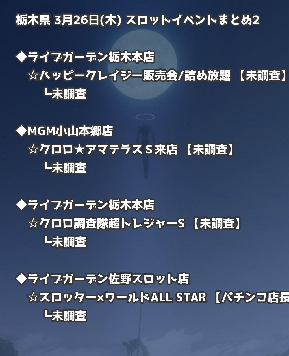 【栃木県】3月26日(木) パチンコホールイベント取材まとめ記事です。