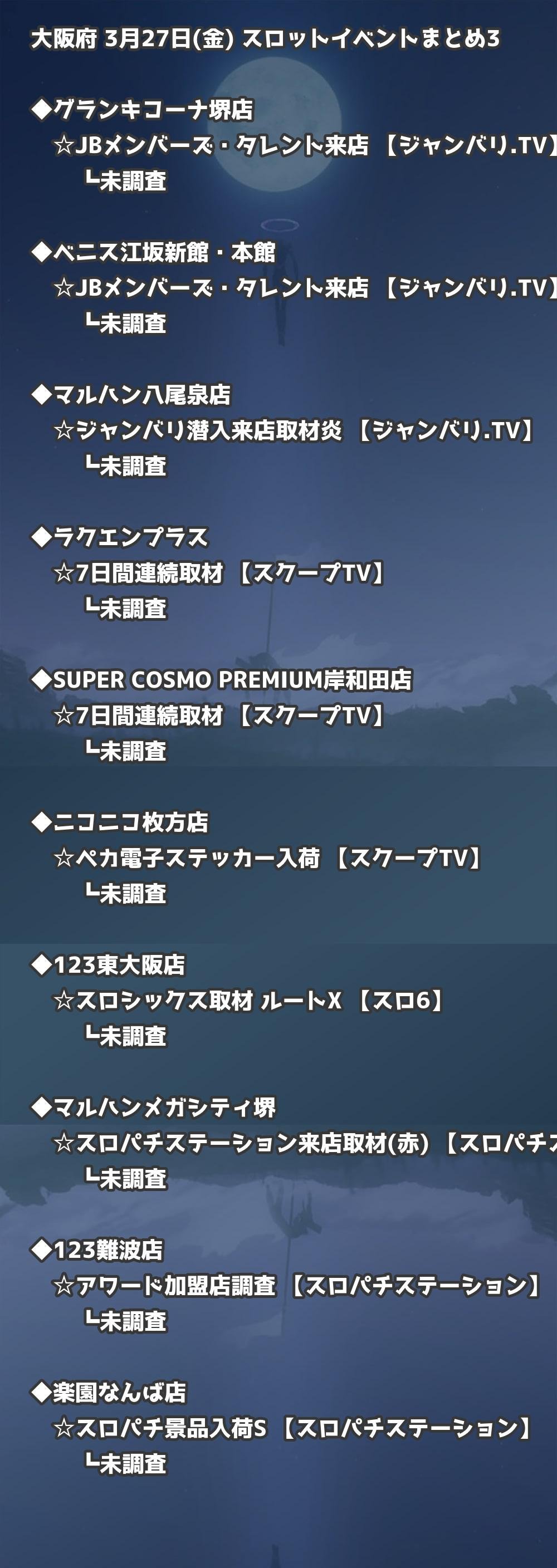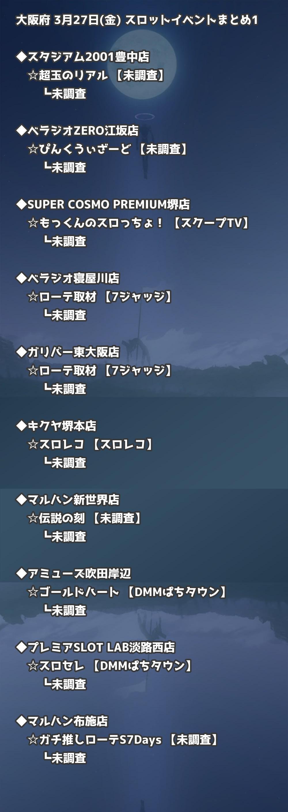 📊 大阪府 3月27日(金) 勝てるパチンコ・スロット取材店舗一覧|おすすめ順