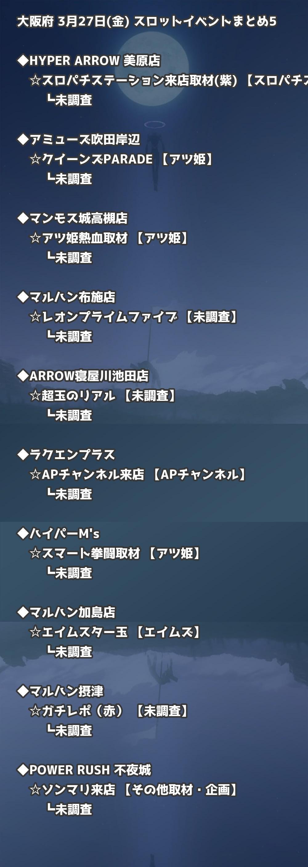 【大阪府】3月27日(金) パチンコホールイベント取材まとめ記事です。