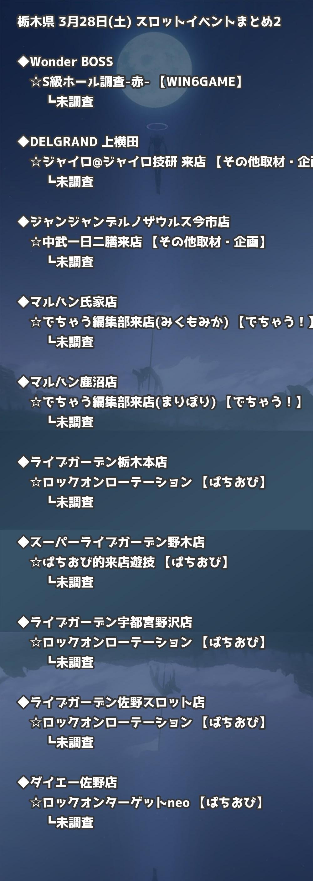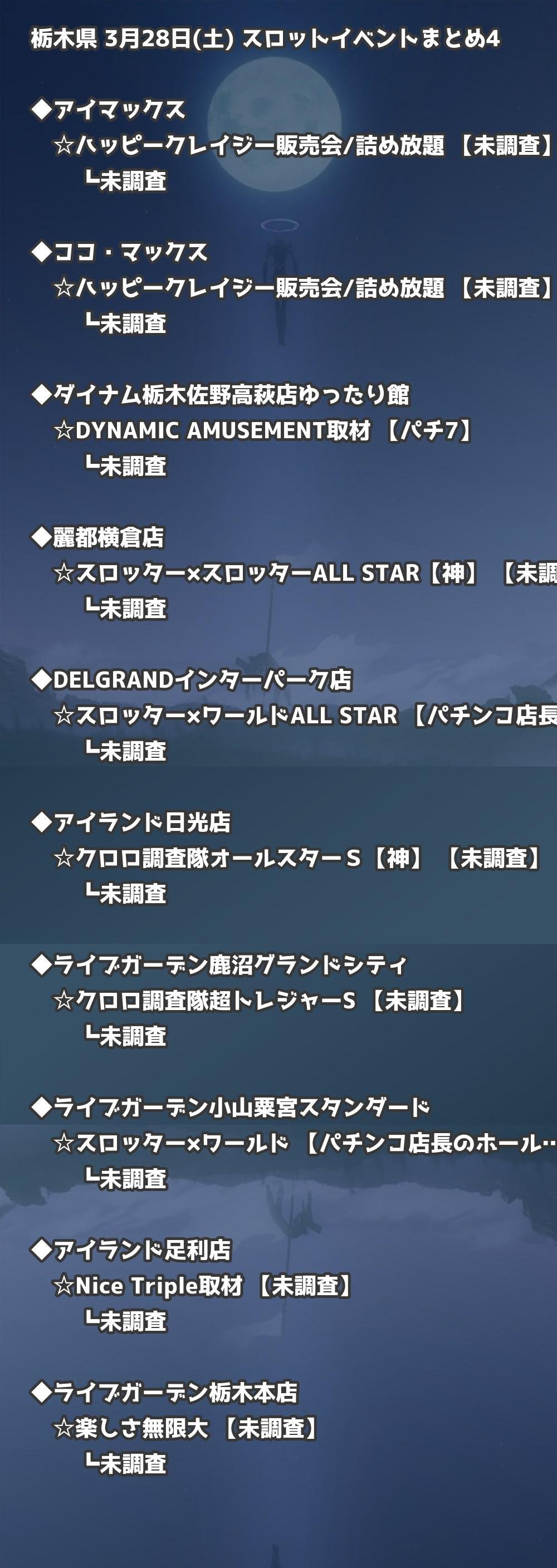 📊 栃木県 3月28日(土) 勝てるパチンコ・スロット取材店舗一覧|おすすめ順