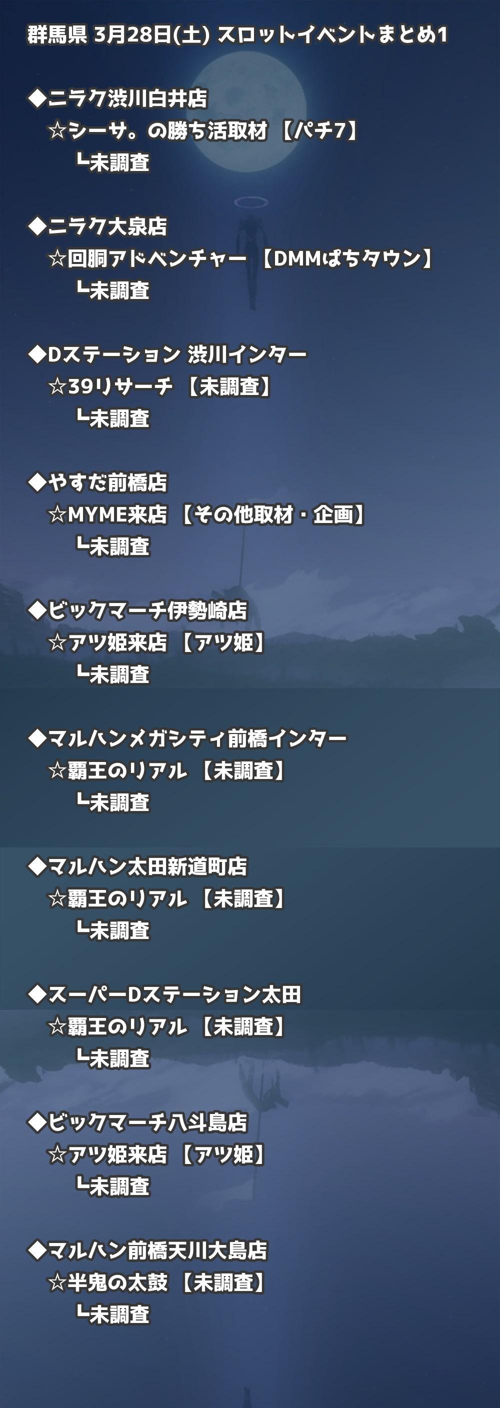 【群馬県】3月28日(土) パチンコホールイベント取材まとめ記事です。