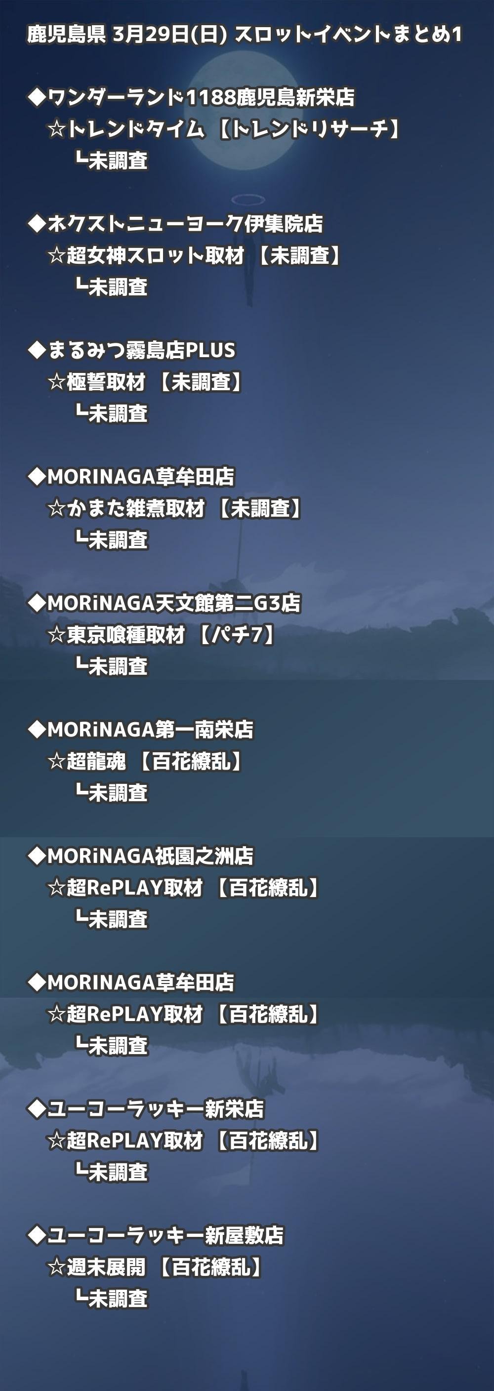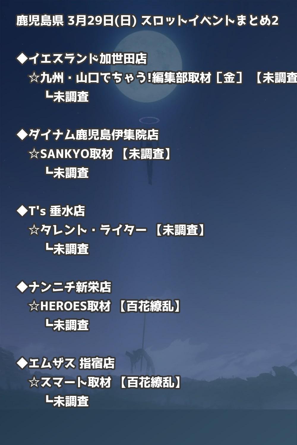 【鹿児島県】3月29日(日) パチンコホールイベント取材まとめ記事です。