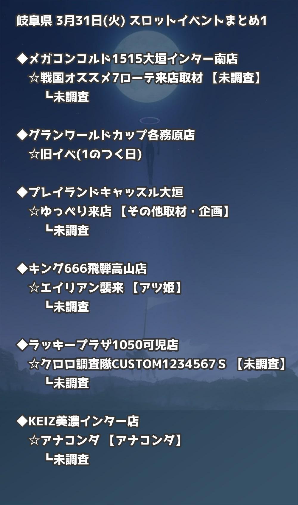 【岐阜県】3月31日(火) パチンコホールイベント取材まとめ記事です。