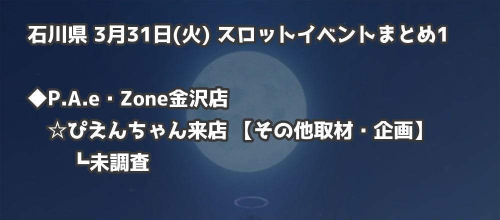 【石川県】3月31日(火) パチンコホールイベント取材まとめ記事です。