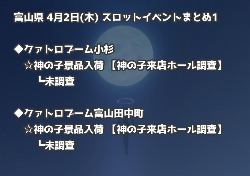 【富山県】4月2日(木) パチンコホールイベント取材まとめ記事です。