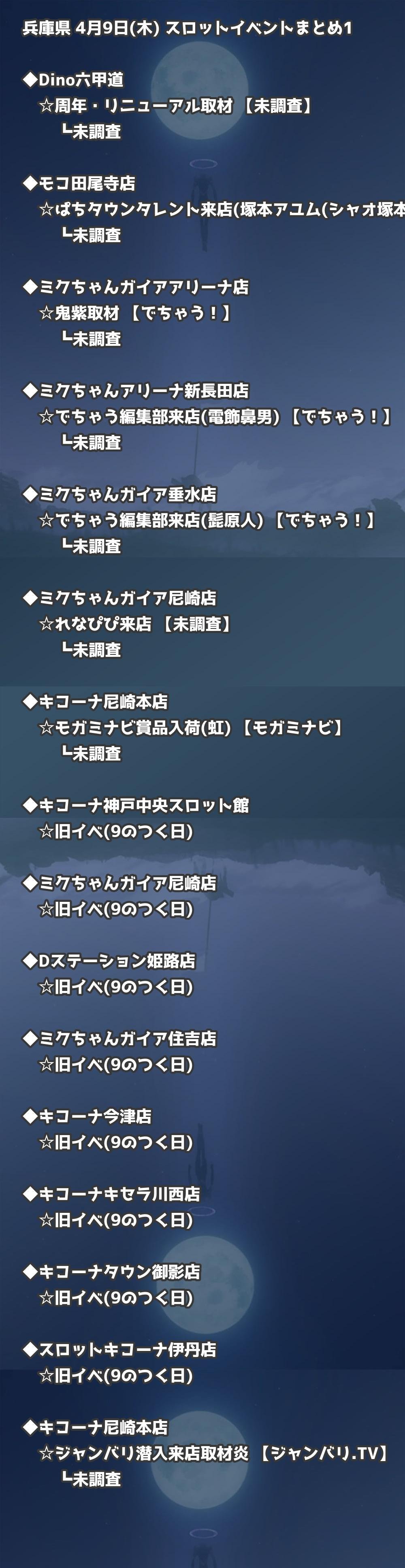 【兵庫県】4月9日(木) パチンコホールイベント取材まとめ記事です。