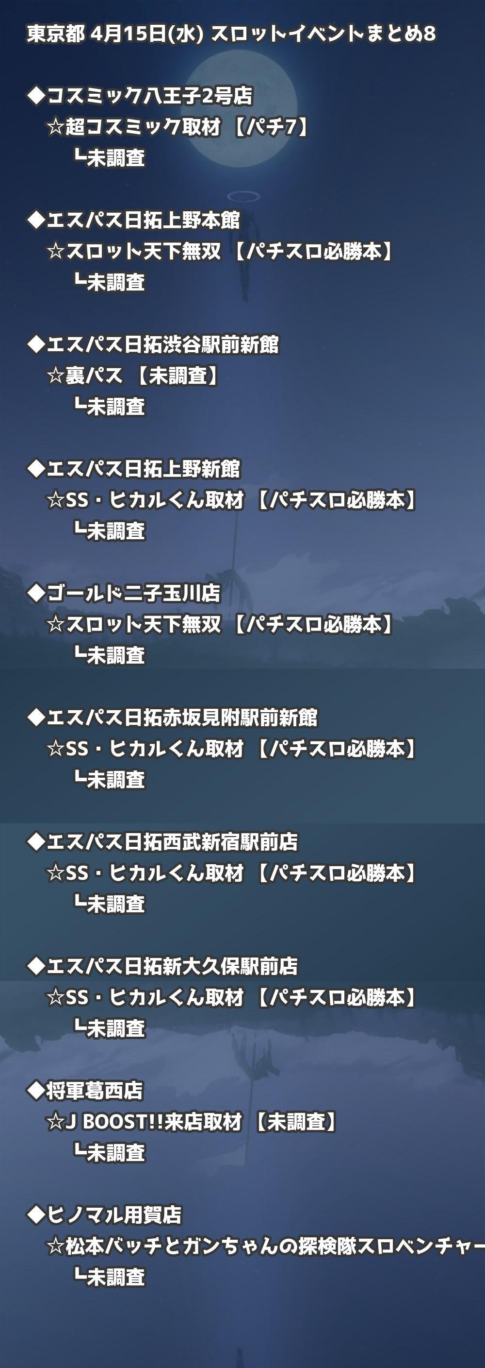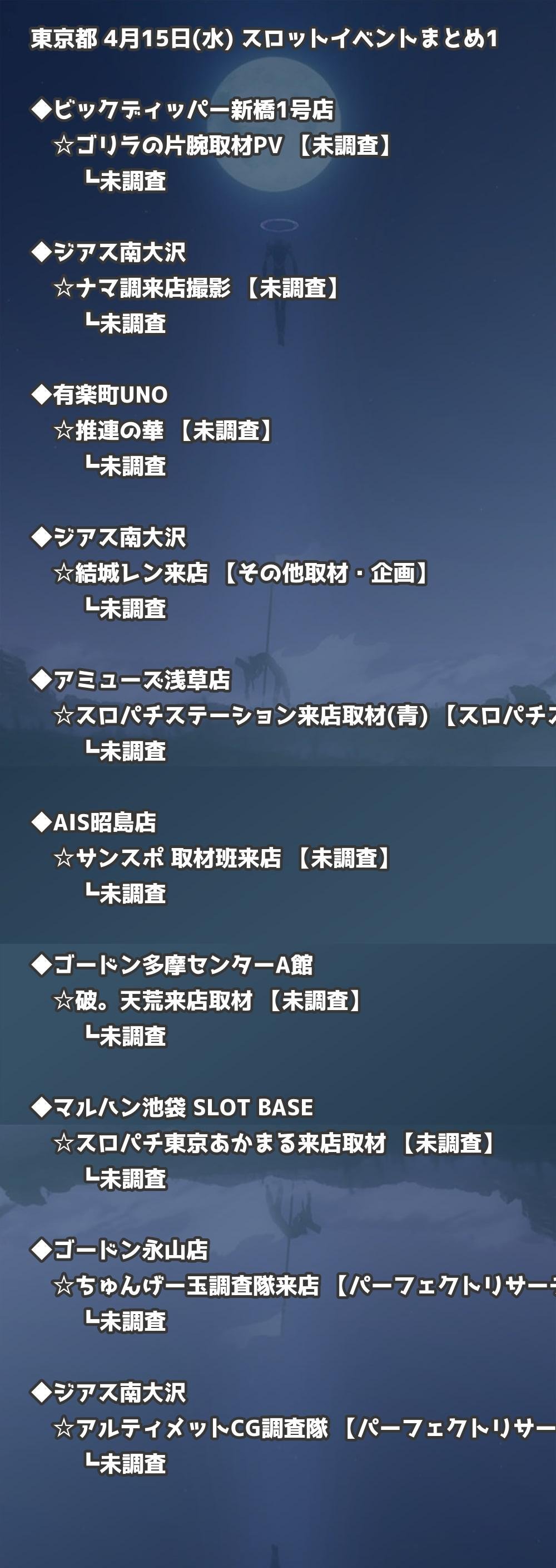 📊 東京都 4月15日(水) 勝てるパチンコ・スロット取材店舗一覧|おすすめ順